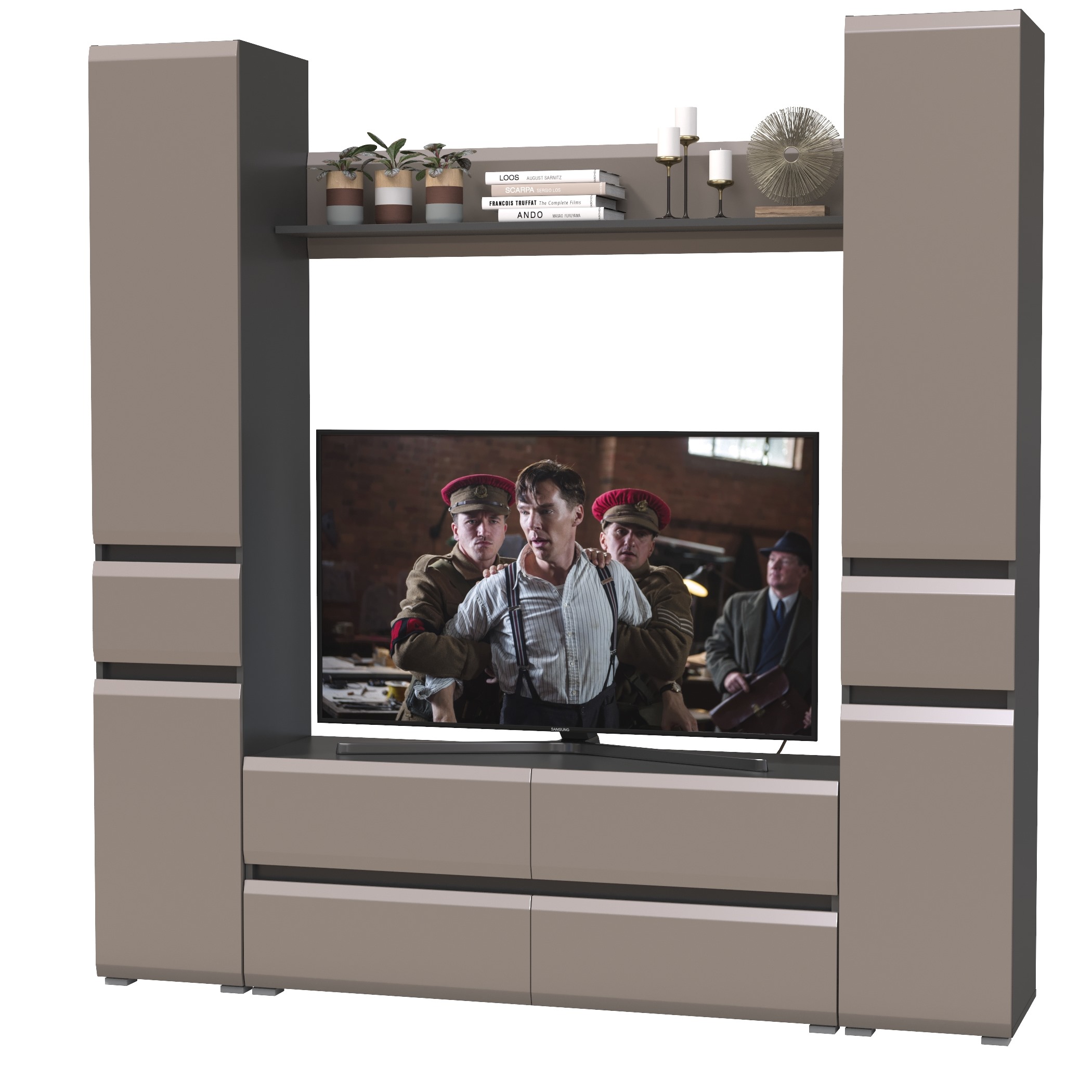Отзывы о Столплит Тумба-ТВ с открытой навесной полочкой и два пенала Сидней с ящиками Антрацит/Капучино