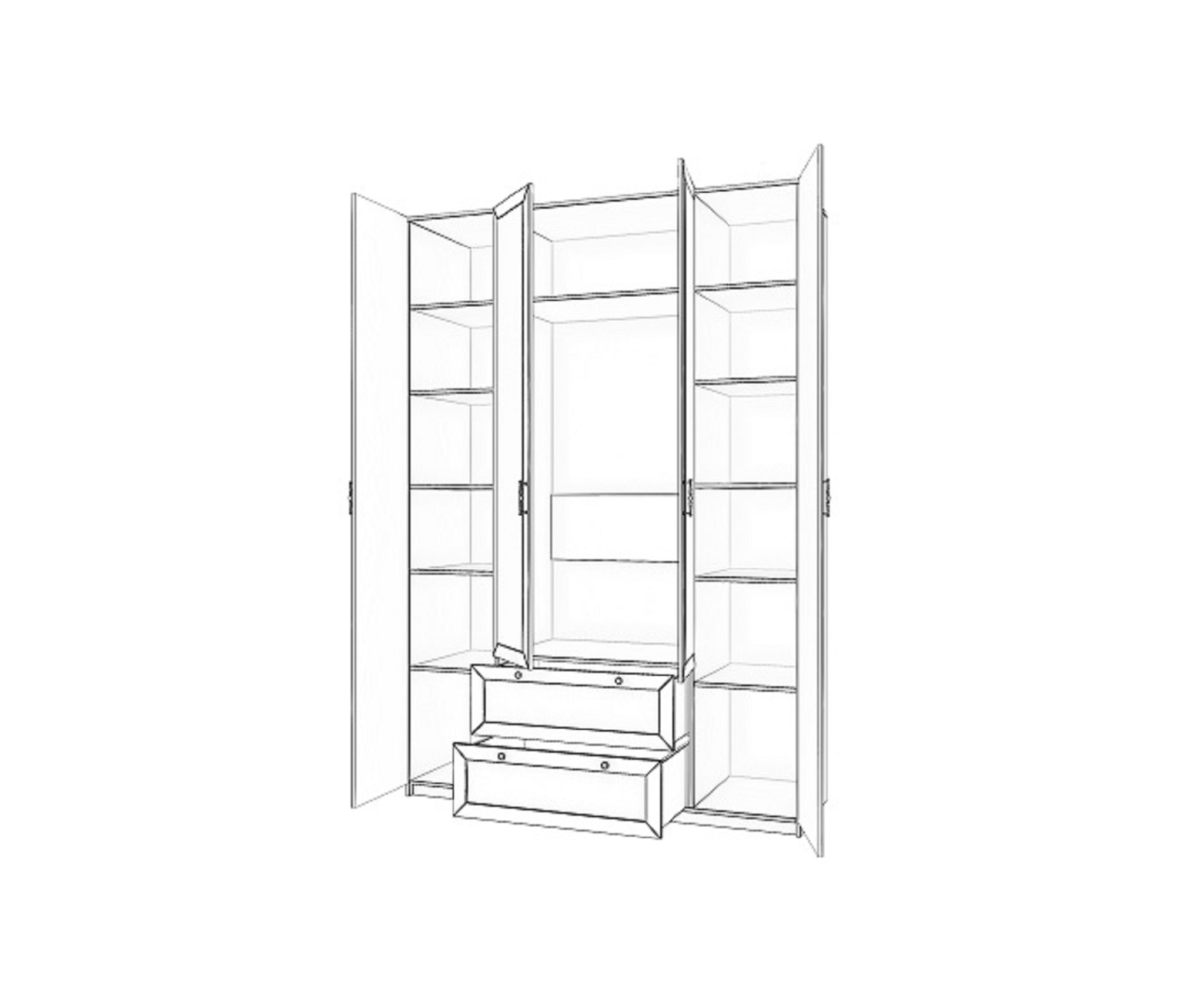Большой распашной четырехдверный шкаф Бэль с 2-мя зеркалами и 2-мя широкими выдвижными ящиками.