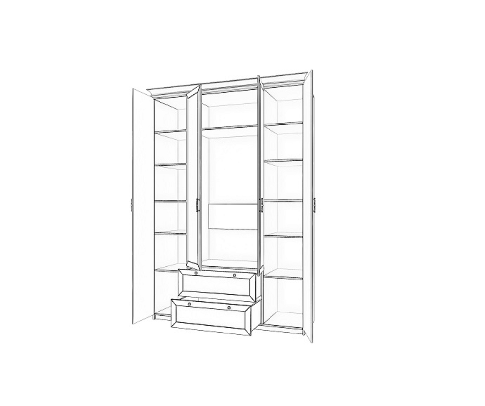 Большой распашной четырехдверный шкаф Бэль с декоративными Карнизами, 2-мя зеркалами и 2-мя широкими выдвижными ящиками.