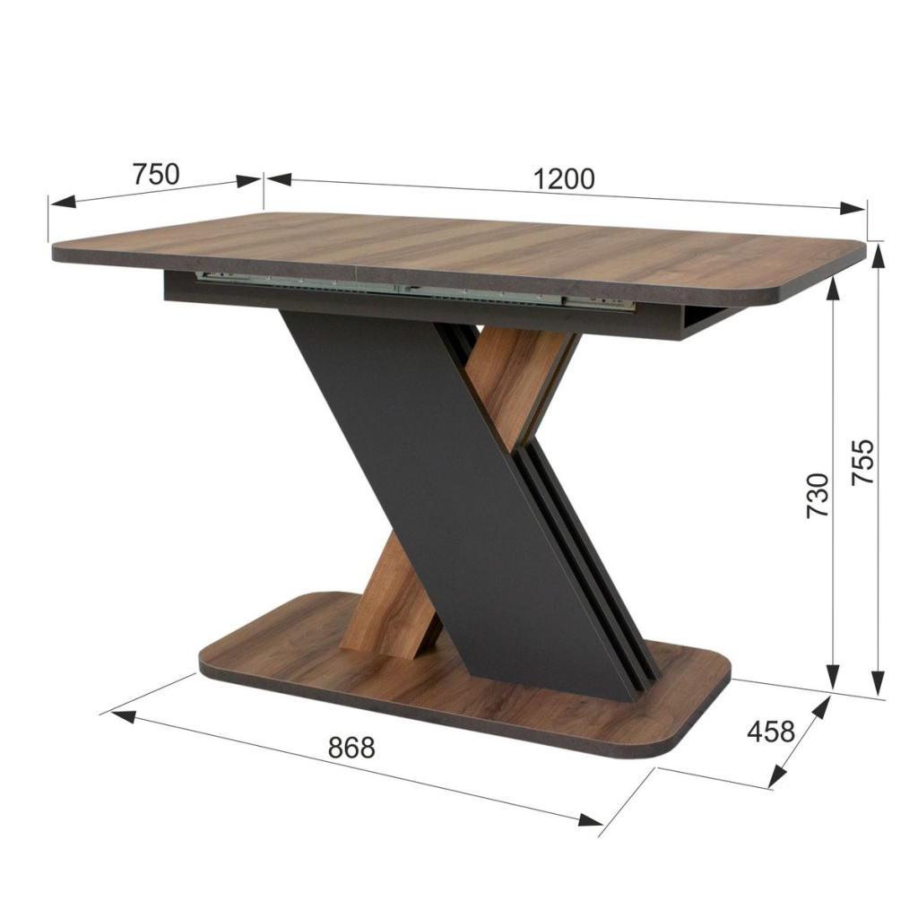 В разложенном виде размеры: 1600х750, h755 мм. В сложенном виде размеры: 1200х750, h755 мм. Стол обеденный раздвижной "Радость" — это отличный выбор для тех, кто ценит удобство и функциональность в интерьере. Обычно такие столы имеют механизмы, позволяющие увеличивать или уменьшать их размеры в зависимости от количества людей, собирающихся за ним.Преимущества раздвижного стола "Радость" могут включать: Функциональность: Возможность изменять размер стола позволяет адаптироваться к различным ситуациям — от обедов в кругу семьи до праздничных приемов с большим количеством гостей. Эстетика: Столы этой категории часто имеют стильный дизайн, который легко вписывается в разные интерьеры, будь то классика, модерн или скандинавский стиль. Материалы: Чаще всего такие столы изготавливаются из качественных материалов, что обеспечивает их долговечность и устойчивость к повреждениям. Легкость в уходе: Раздвижные механизмы и поверхности столов обычно легко чистятся и обслуживаются.