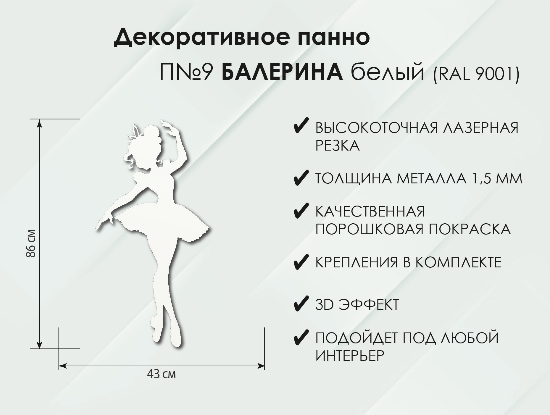 Откройте для себя декоративное панно из надежного металла с толщиной 1,5 мм, выполненное с применением лазерной обработки. Это уникальное изделие представлено в трех элегантных цветах: чёрном, кремово-белом и бронзовом.