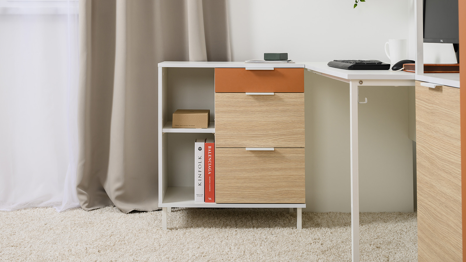 Широкая столешница 1400 мм сделает работу комфортной.
