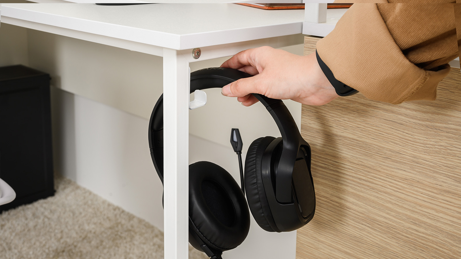 На опоре есть металлический крючок для сумки, рюкзака или аксессуаров.