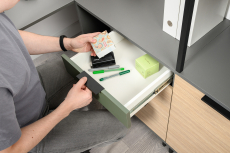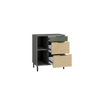Конструкция с тремя выдвижными ящиками. Ящики разной глубины, установлены на шариковые направляющие полного выдвижения.