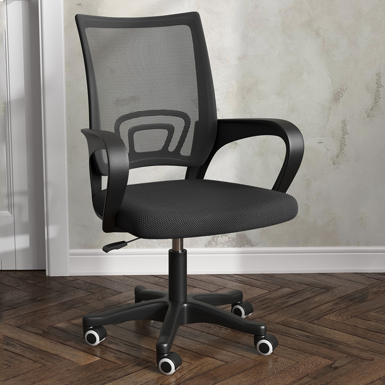 Материал каркаса и крестовины - черный пластик - популярный прочный материал, обеспечивающий долговечность кресла.