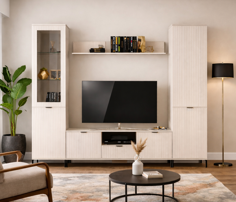 Турин СБ-3572 Тумба под телевизор Кашемир серый/МДФ Кашемир