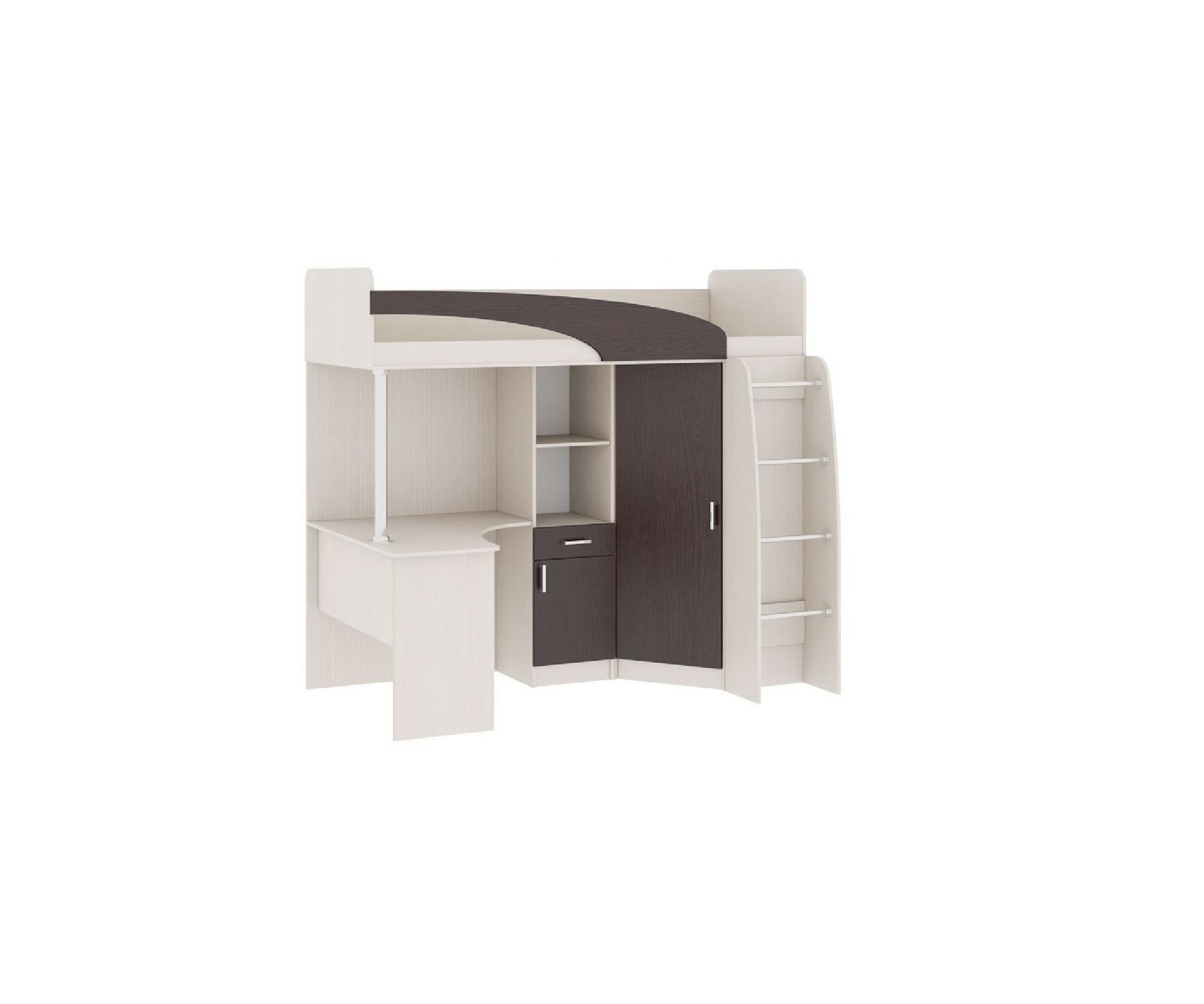 Кровать-чердак Карамель 77-01 оригинальное и современное комплексное решение для небольшой детской комнаты.