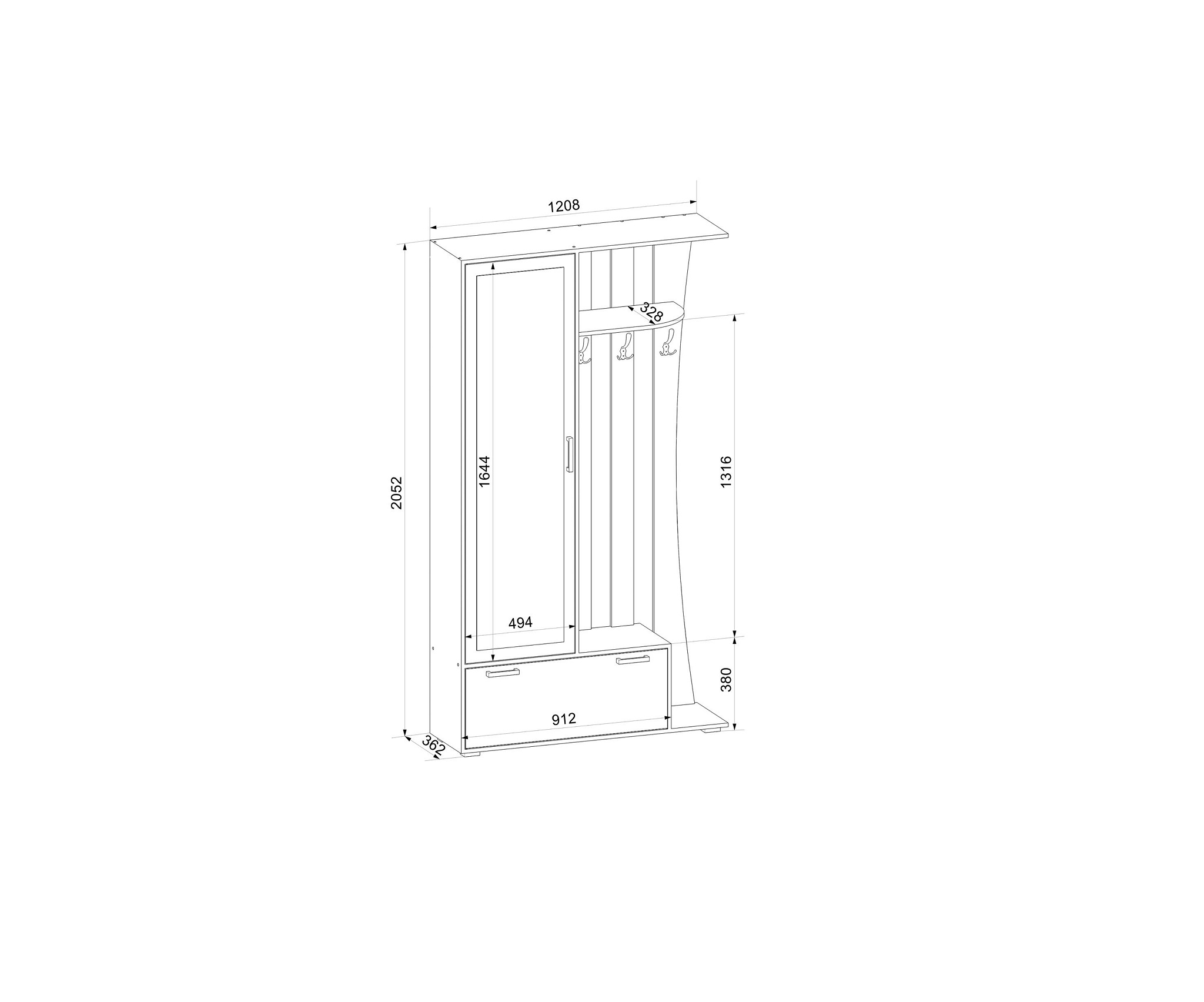 Размер: В-2052 мм, Ш-1208 мм, Г-362 мм.