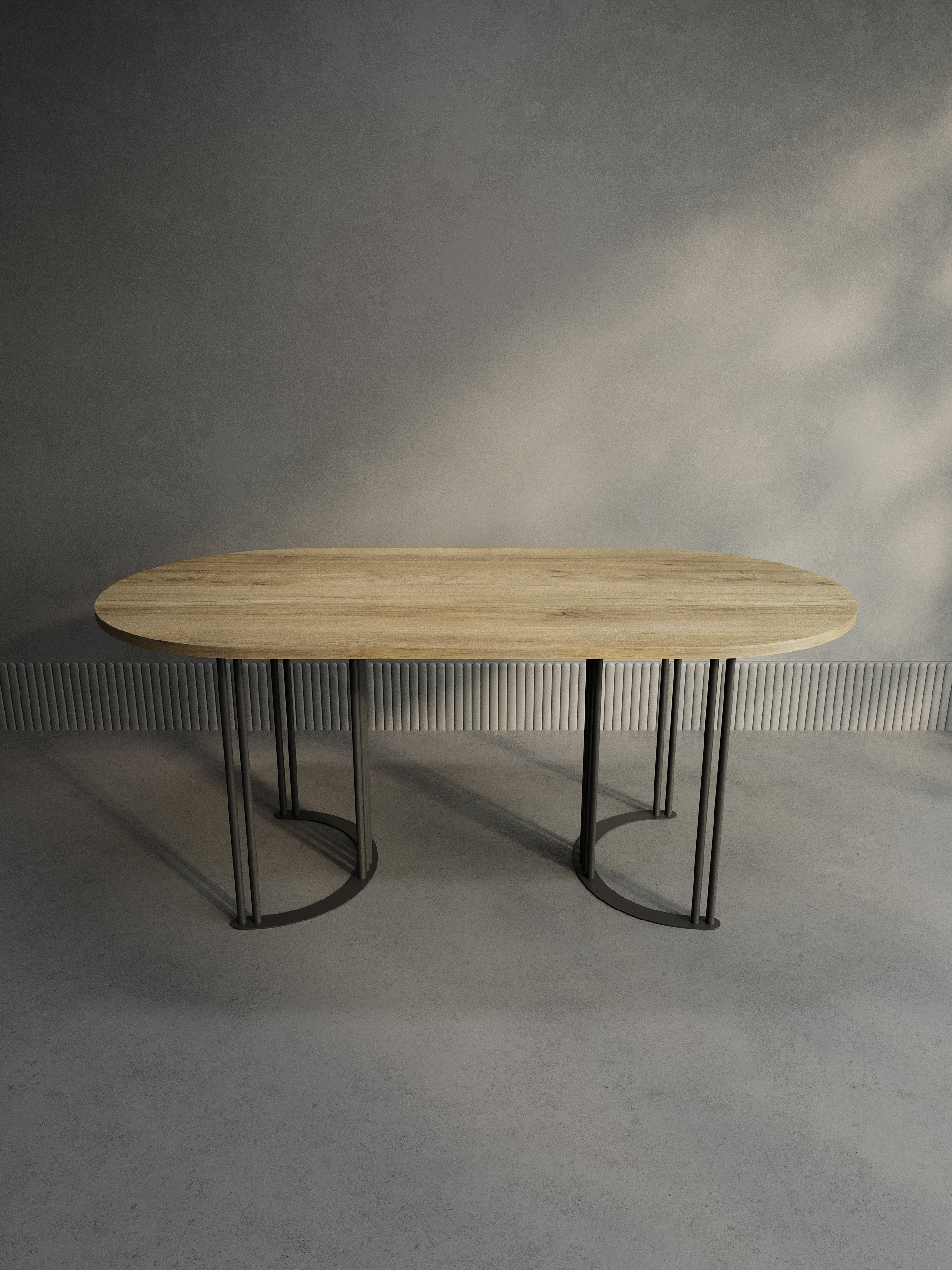 Дизайнерский обеденный стол серия VIOLUR. Обеденный стол - неотъемлемая деталь кухонного интерьера, центр внимания и залог комфортной трапезы. Дизайнерский стол в минималистичном стиле станет гармоничным дополнением кухонного или офисного пространства.Овальный кухонный стол, состоящий из столешницы белого цвета и черного металлического подстолья, не только прекрасно впишется в интерьер вашего дома, но и станет незаменимым элементом вашего обеденного пространства. Он прекрасно сочетается со стилем LOFT и однозначно будет притягивать взгляды окружающих. Обеденный овальный стол придаёт кухне стильный и современный вид. Создает гармоничное пространство, располагая к уютным беседам и веселым застольям. Кухонный стол — это не просто предмет мебели, а место для теплых воспоминаний и общения с близкими.Кроме того, этот стол также может быть использован как письменный стол, или как рабочий стол, его эргономичный дизайн обеспечит комфорт и удобство. Стол VIOLUR идеально подойдет для офиса или переговорной комнаты. За ним можно провести продуктивные рабочие встречи, обсудить важные вопросы с партнерами или просто насладиться плодотворной работой.