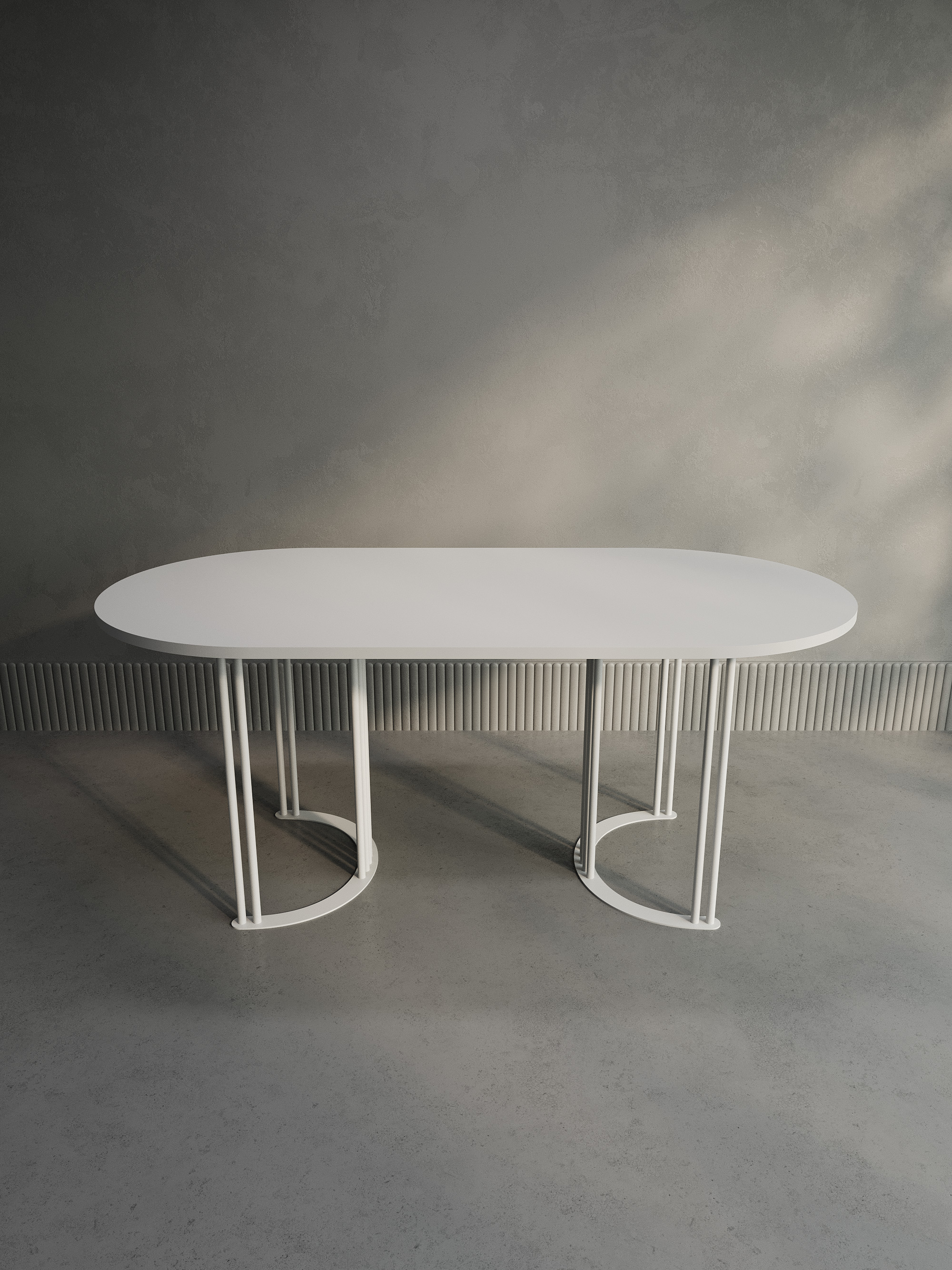 Дизайнерский обеденный стол серия VIOLUR. Обеденный стол - неотъемлемая деталь кухонного интерьера, центр внимания и залог комфортной трапезы. Дизайнерский стол в минималистичном стиле станет гармоничным дополнением кухонного или офисного пространства.Овальный кухонный стол, состоящий из столешницы белого цвета и черного металлического подстолья, не только прекрасно впишется в интерьер вашего дома, но и станет незаменимым элементом вашего обеденного пространства. Он прекрасно сочетается со стилем LOFT и однозначно будет притягивать взгляды окружающих. Обеденный овальный стол придаёт кухне стильный и современный вид. Создает гармоничное пространство, располагая к уютным беседам и веселым застольям. Кухонный стол — это не просто предмет мебели, а место для теплых воспоминаний и общения с близкими.Кроме того, этот стол также может быть использован как письменный стол, или как рабочий стол, его эргономичный дизайн обеспечит комфорт и удобство. Стол VIOLUR идеально подойдет для офиса или переговорной комнаты. За ним можно провести продуктивные рабочие встречи, обсудить важные вопросы с партнерами или просто насладиться плодотворной работой.