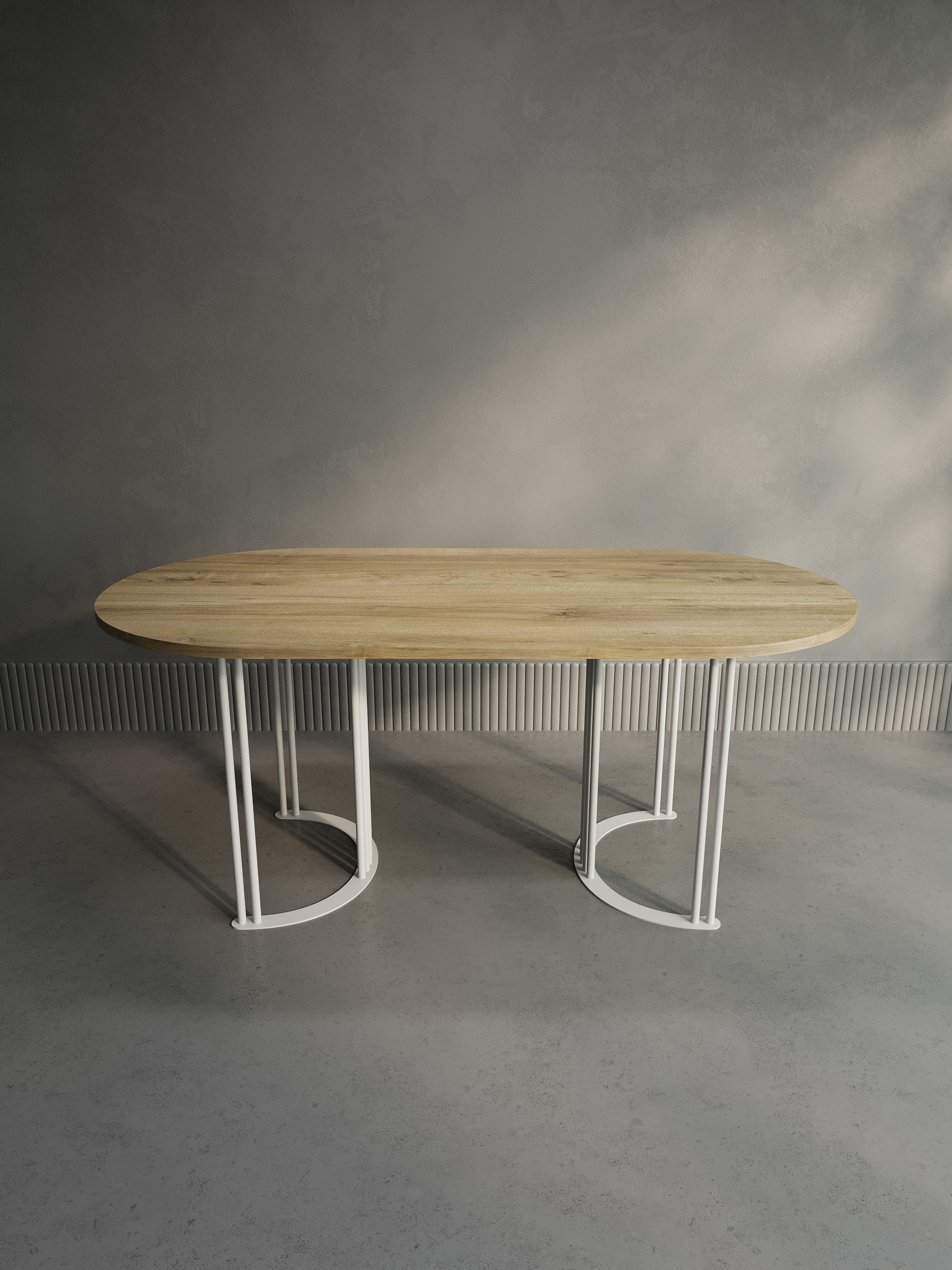 Дизайнерский обеденный стол серия VIOLUR. Обеденный стол - неотъемлемая деталь кухонного интерьера, центр внимания и залог комфортной трапезы. Дизайнерский стол в минималистичном стиле станет гармоничным дополнением кухонного или офисного пространства.Овальный кухонный стол, состоящий из столешницы белого цвета и черного металлического подстолья, не только прекрасно впишется в интерьер вашего дома, но и станет незаменимым элементом вашего обеденного пространства. Он прекрасно сочетается со стилем LOFT и однозначно будет притягивать взгляды окружающих. Обеденный овальный стол придаёт кухне стильный и современный вид. Создает гармоничное пространство, располагая к уютным беседам и веселым застольям. Кухонный стол — это не просто предмет мебели, а место для теплых воспоминаний и общения с близкими.Кроме того, этот стол также может быть использован как письменный стол, или как рабочий стол, его эргономичный дизайн обеспечит комфорт и удобство. Стол VIOLUR идеально подойдет для офиса или переговорной комнаты. За ним можно провести продуктивные рабочие встречи, обсудить важные вопросы с партнерами или просто насладиться плодотворной работой.