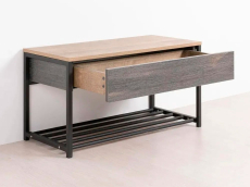 Обувница Трувор — функциональное дополнение современной прихожей. На нее удобно присесть во время переобувания или поставить тяжелые пакеты с продуктами. Выдвижной ящик создает дополнительное место для хранения аксессуаров и других мелочей, а на подставке помещается несколько пар повседневной обуви. Съемная конструкция полки значительно упрощает уборку.
