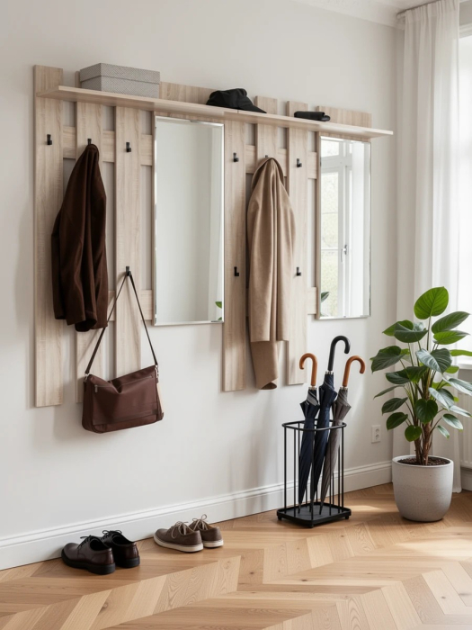 Две вешалки для верхней одежды с зеркалом Лира 2-3814 - идеальный вариант хранения сезонной верхней одежды в ненастную погоду.