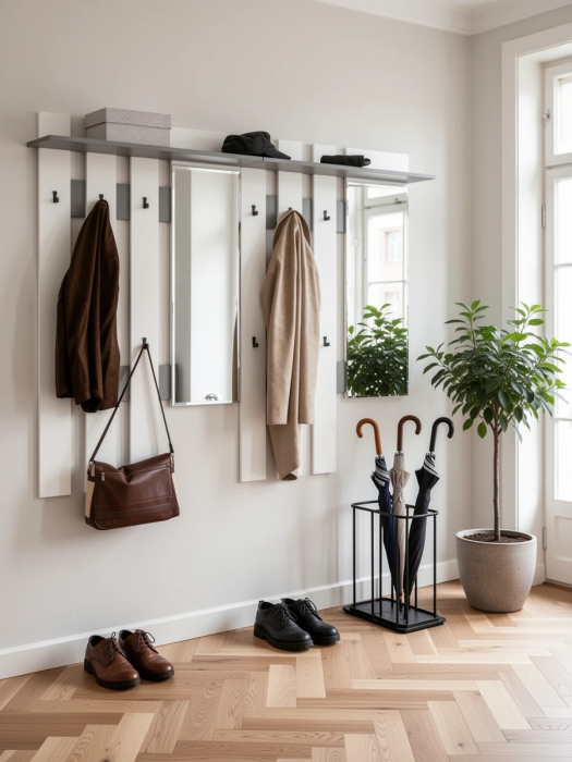 Две вешалки для верхней одежды с зеркалом Лира 2-3814 - идеальный вариант хранения сезонной верхней одежды в ненастную погоду.