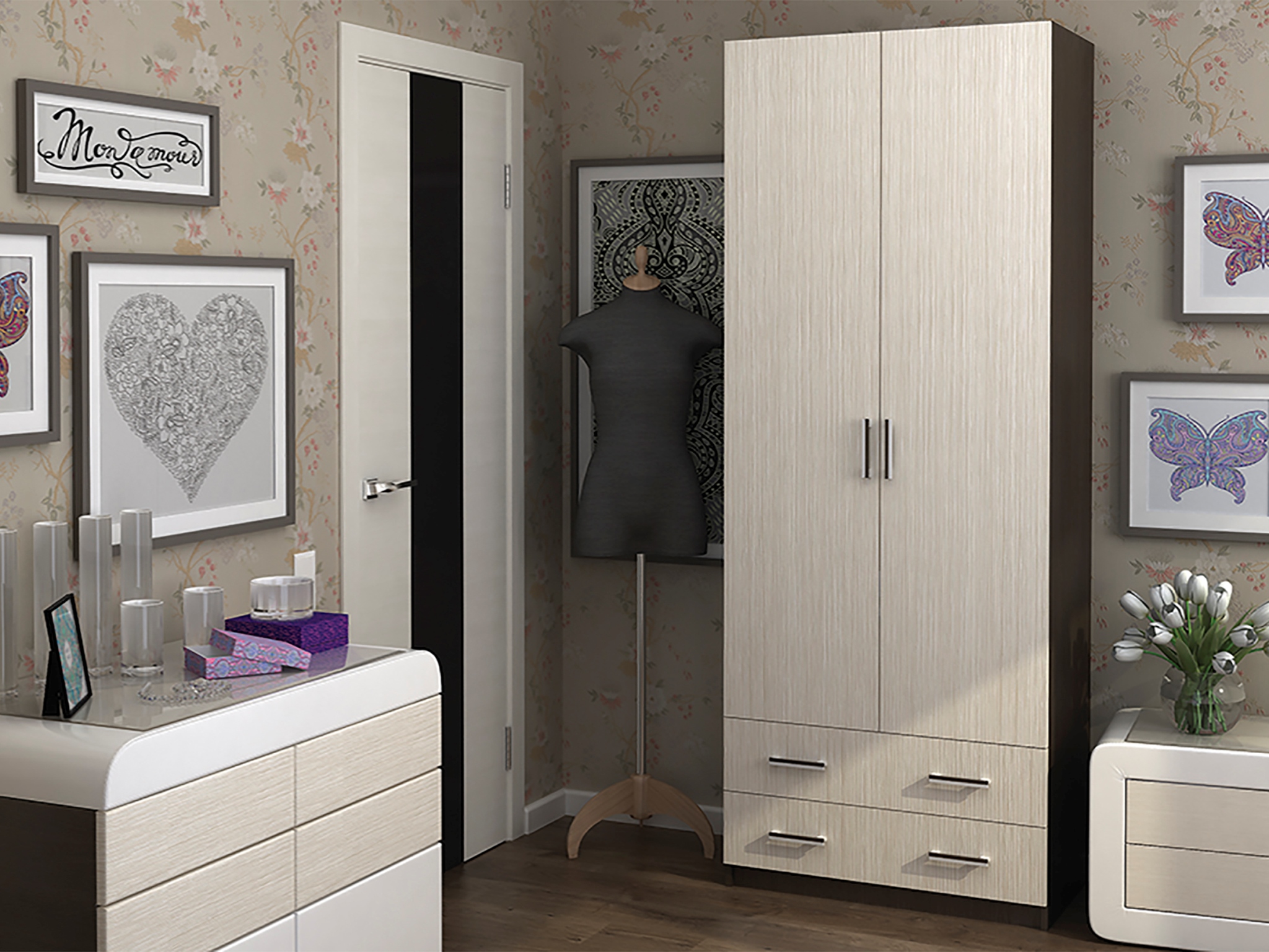Корпус изготовлен из ЛДСП. Фасад изготовлен из МДФ в пленке ПВХ, с фрезеровкой.