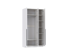 Наполнение шкафа состоит из секций для хранения и полок, также горизонтальной штанги для плечиков.