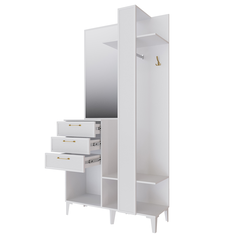 Благодаря стильному дизайну и компактным размерам секция Толедо ТЦС-30 впишется в малогабаритную прихожую или квартиру-студию. Наличие полок, ящиков, надежные крючки и ниша под обувь позволят разместить верхнюю одежду, уличную и домашнюю обувь, сезонные аксессуары и головные уборы.