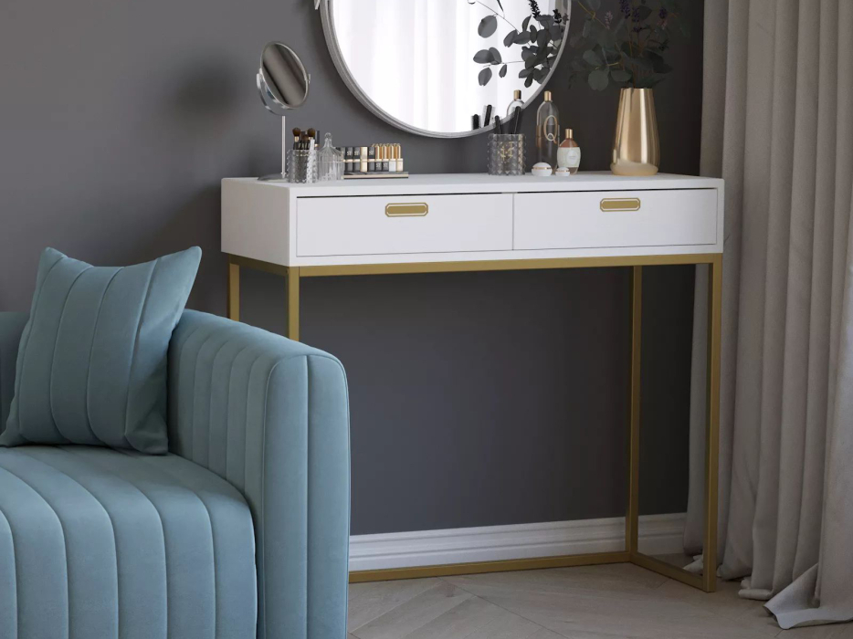 Консоль «Дрим» - это лаконичная модель в современном стиле. Благодаря своему универсальному дизайну и функциональной простоте, она может вписаться в любой современный интерьер. Простая геометрическая форма смотрится легко и не загромождает пространство, а вариация цветов облегчает подбор подходящей к вашему интерьеру консоли. Дизайнерский прием - возможность комбинировать с другими предметами интерьера из серии "Дрим", позволяя воссоздать атмосферу истинного комфорта и удобства. Консоль выполнена из материала ЛМДФ 16 мм в сочетании с металлическим профилем 20 мм. Шариковые направляющие с открытием push-to-open. Открытие ящика нажатием. Декоративная накладка для защиты ПВХ.