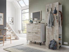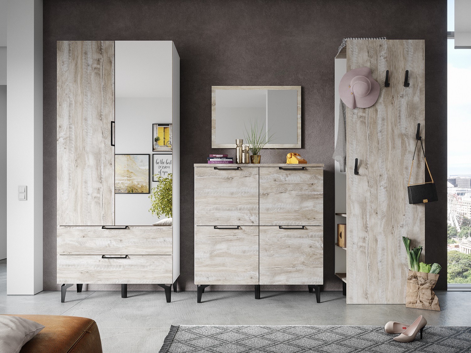 Организовать хранение в малогабаритной прихожей не всегда просто ввиду отсутствия места и особенностей планировки этого помещения в современных квартирах. С мебелью из коллекции Чикаго Вы быстро и с комфортом решите эту задачу! Использовать пространство рационально помогут: напольная вешалка интересной конструкции со штангой и крючками для верхней одежды и полками для обуви, вместительный комод с откидными дверцами и зеркало, как элемент декорирования пространства. Завершит мебельный гарнитур двухдверный шкаф с зеркальнымфасадом и ящиками. Модульная коллекция выполнена из ЛДСП в современном декоре с тиснением натурального дерева и украшена стильной фурнитурой.