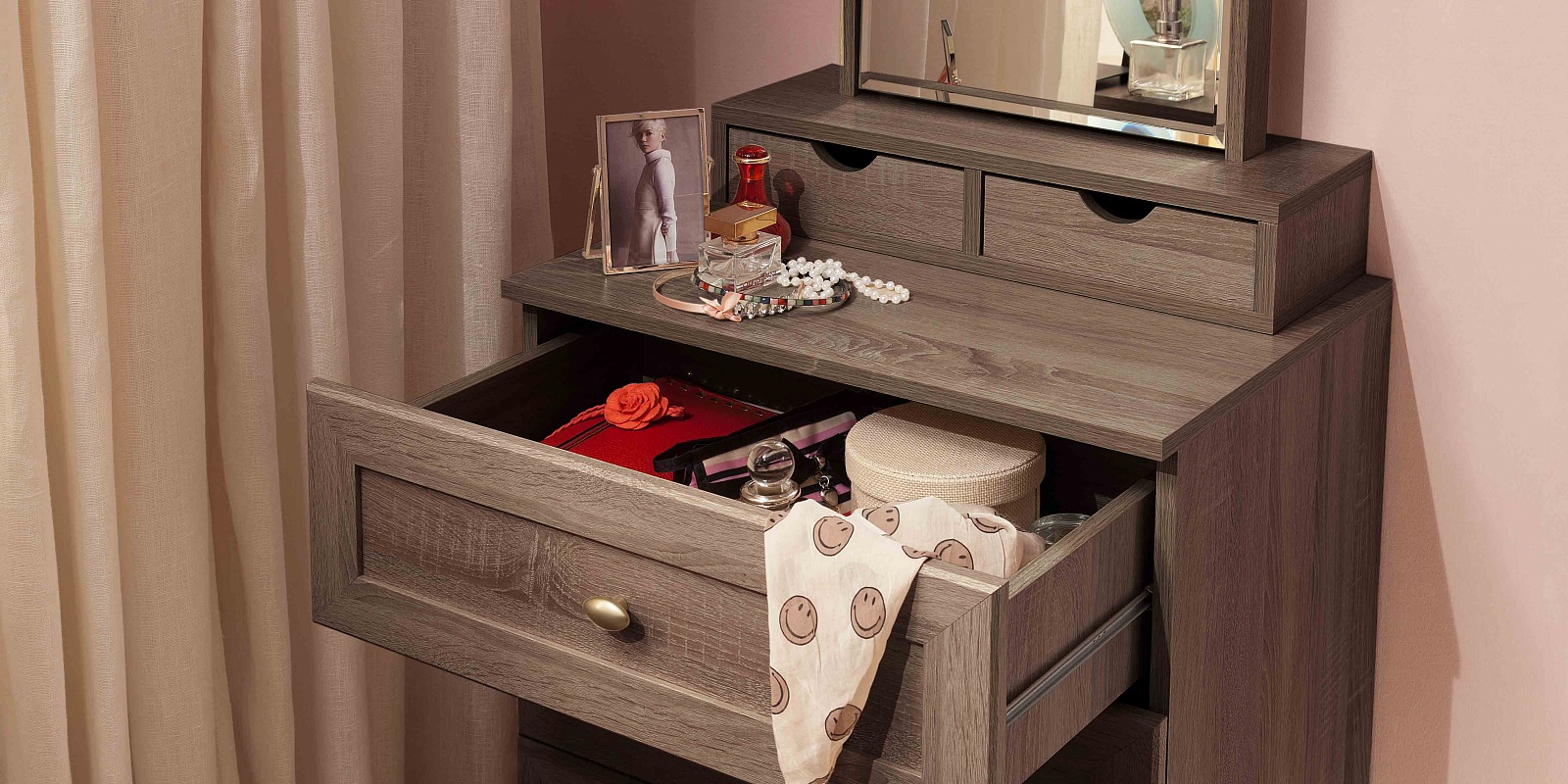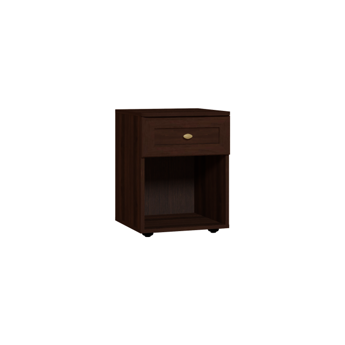 Компактная прикроватная тумба Sherlock 64 гармонично дополнит интерьер Вашей классической спальни. Выполнена в декоре с имитацией текстуры дерева и имеет миниатюрную наружную фурнитуру. Ящик оснащен шариковыми направляющими. Пригодится для хранения различных мелочей, которые нужны перед сном и после пробуждения, а также для установки светильника.