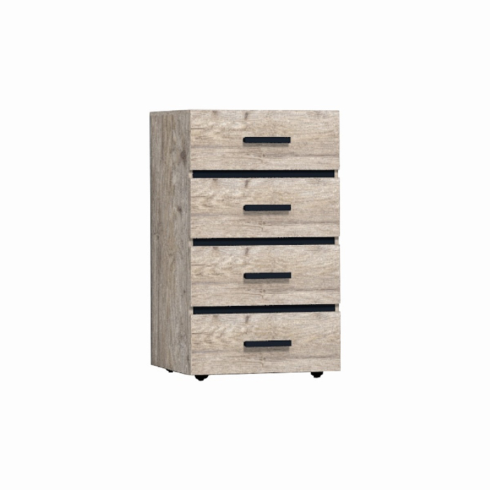 Для спальни отлично подойдет высокий комод Nature 45. Гладкие фасады ящиков в теплом декоре Дуб Табачный Craft с контрастными черными боковыми планками снизу делают его по-настоящему особенным. Четыре выдвижных ящика способны вместить все необходимое, а компактная конструкция сэкономит место в комнате. Ящики легко открываются благодаря направляющим полного выдвижения. Они быстро и легко устанавливаются при сборке комода. Регулируемые опоры компенсируют незначительные неровности пола.