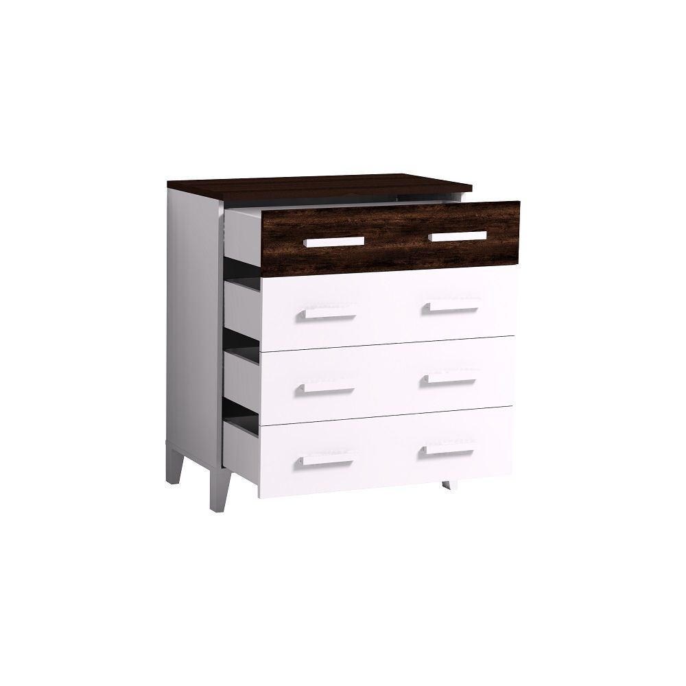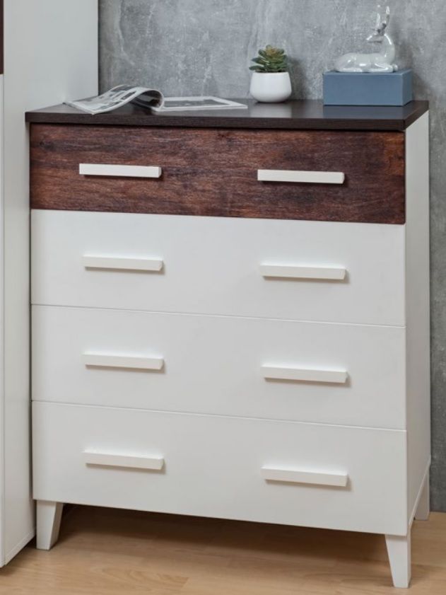 Большой комод "Наоми", выполненный в цвете "дуб каньон" с темными фасадами, может стать привлекательным акцентом любой комнаты. За двумя распашными дверцами, в которые встроены тонированные стекла, расположены полки для хранения посуды или сувениров. А в верхние выдвижные ящики можно положить какие-то мелочи, аксессуары или документы.