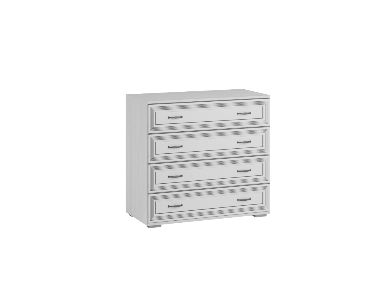 Классический комод с четырьмя выдвижными ящиками, каждый из которых оснащен двумя ручками для аккуратного открывания. Вместительный и небольшой вариант для хранения белья.Материал фасада:Рамочный профиль из МДФ, 3D-вставка из МДФ.Материал корпуса:ЛДСП.Фурнитура:«Старая бронза» 96 мм.Установлены петли с доводчиками для бесшумного закрывания и шариковые направляющие полного выдвижения.