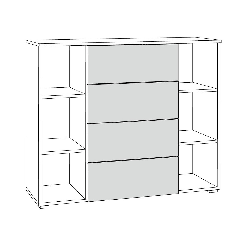 Комод оснащён дверьми, доводчиками, ящиками (4 шт.) ручками из металла. Регулируемые опоры позволяют установить комод на неровной поверхности.