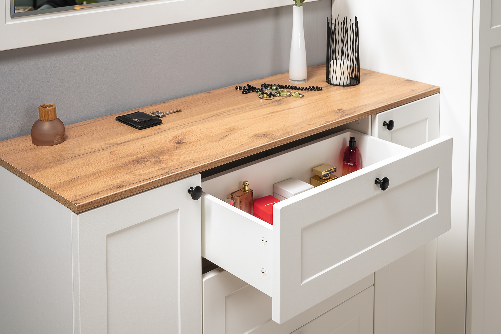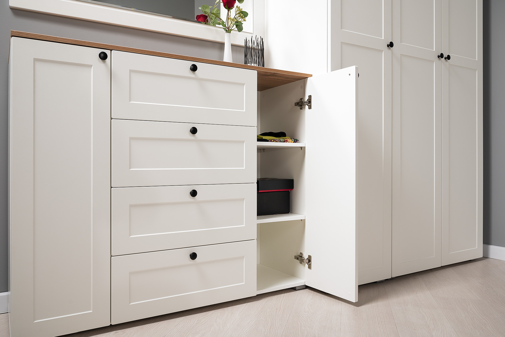Комод Остин изготовлен из высококачественных материалов: МДФ для фасадов и ЛДСП для корпуса.