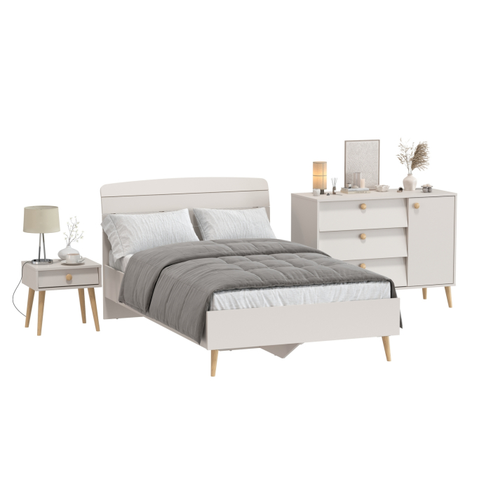 Комплектация включает кровать 1200 Афина 4-22905, комод с дверкой и тремя ящиками Афина 4-44901 и тумбу прикроватную Афина 4-09901.