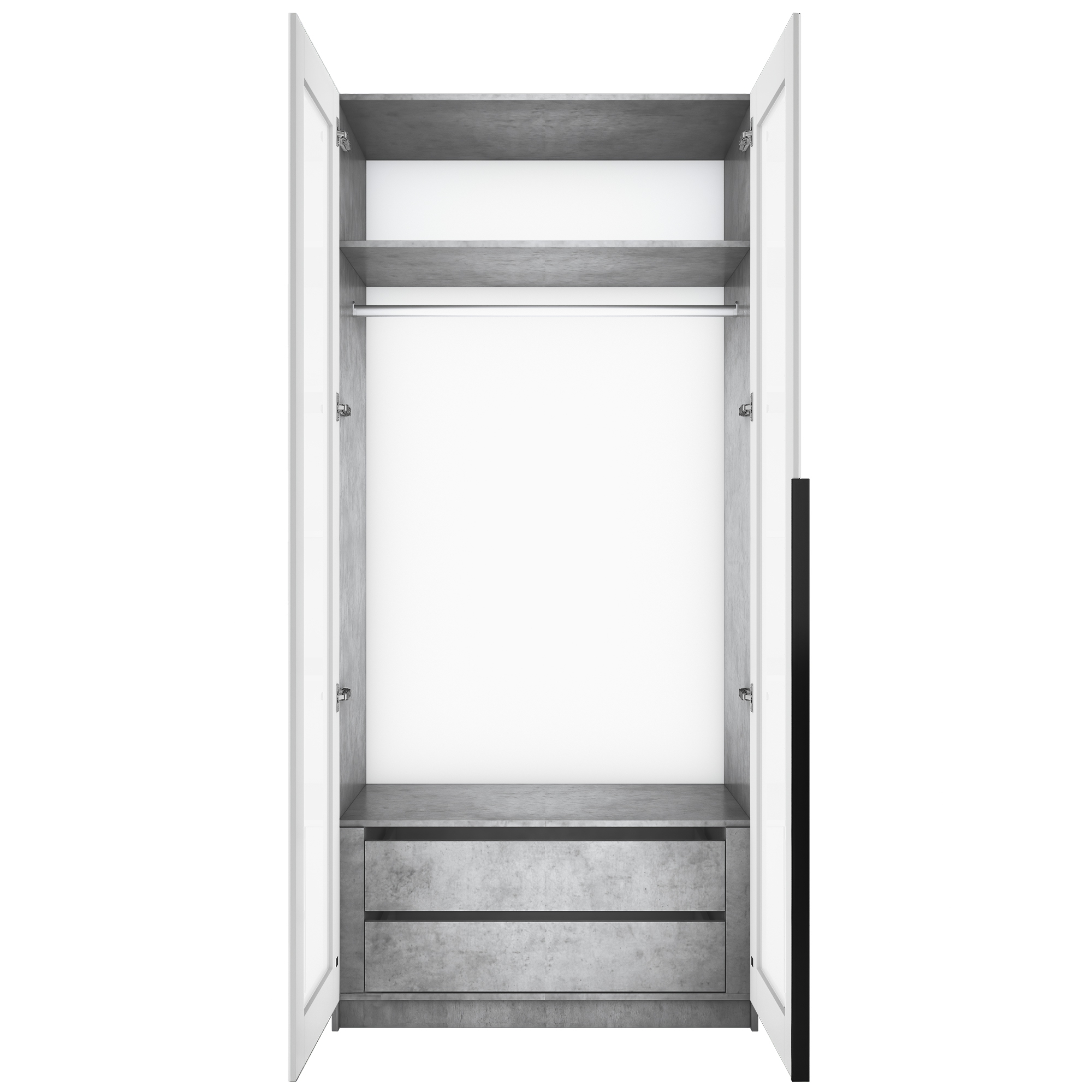 Шкаф распашной Е1 Локер 101x52.5x220 см, с белым стеклом и модулем (бетон)