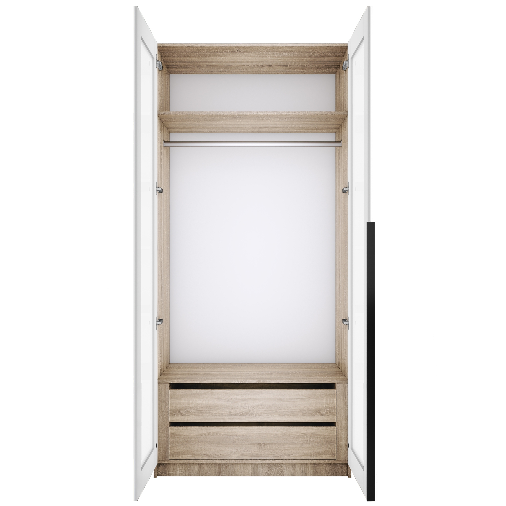 Шкаф распашной Е1 Локер 101x52.5x220 см, с белым стеклом и модулем (Дуб сонома)