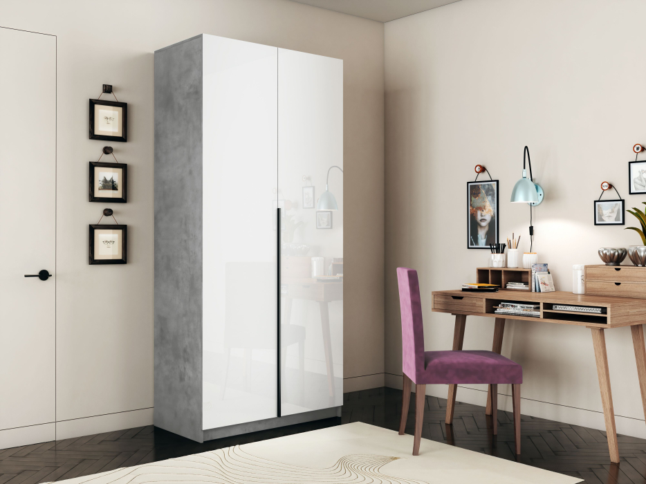 Шкаф распашной Е1 Локер 101x52.5x220 см, с белым стеклом (бетон)