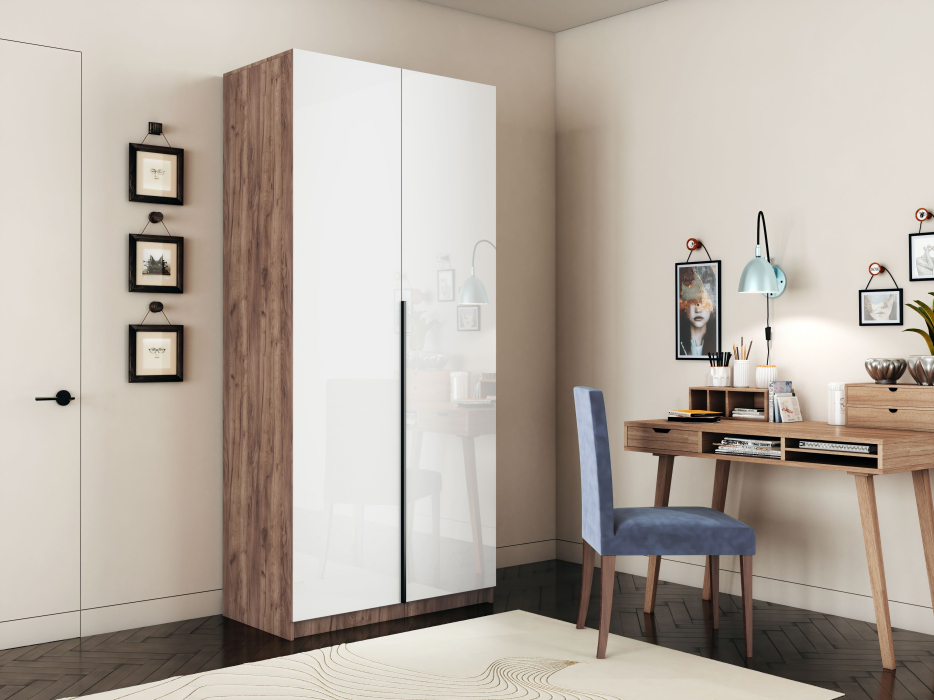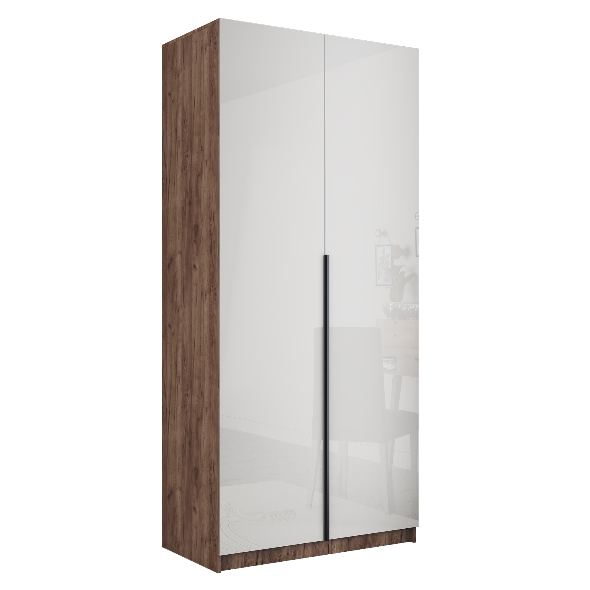 Шкаф распашной Е1 Локер 101x52.5x220 см, с белым стеклом (Дуб/крафт/табак)