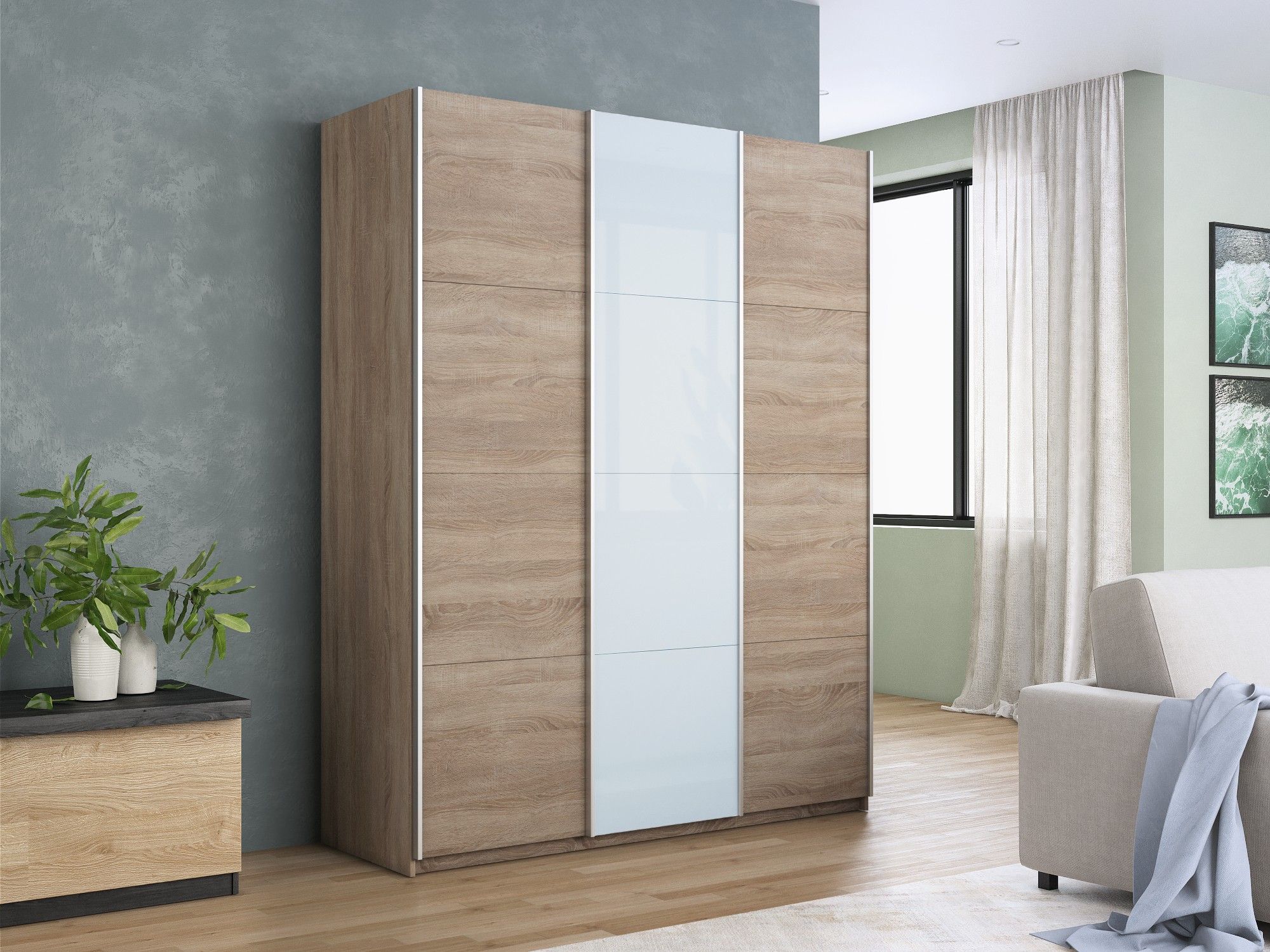 Шкаф-купе Прайм 3-х дверный ДСП/Стекло белое/Доводчики 180х57х230 (Дуб сонома)