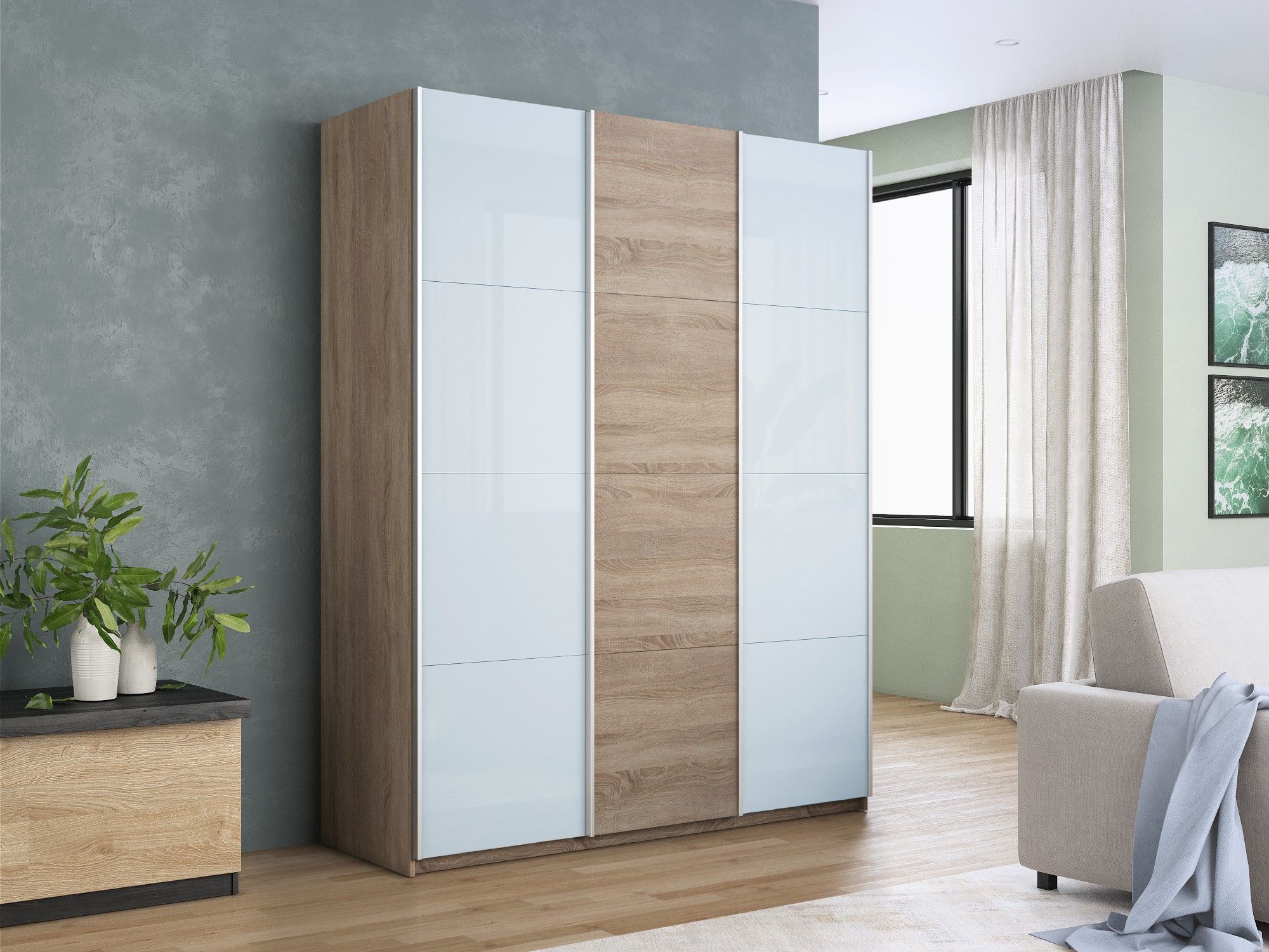 Шкаф-купе Прайм 3-х дверный Стекла белые/ДСП/Доводчики 210х57х230 (Дуб сонома)