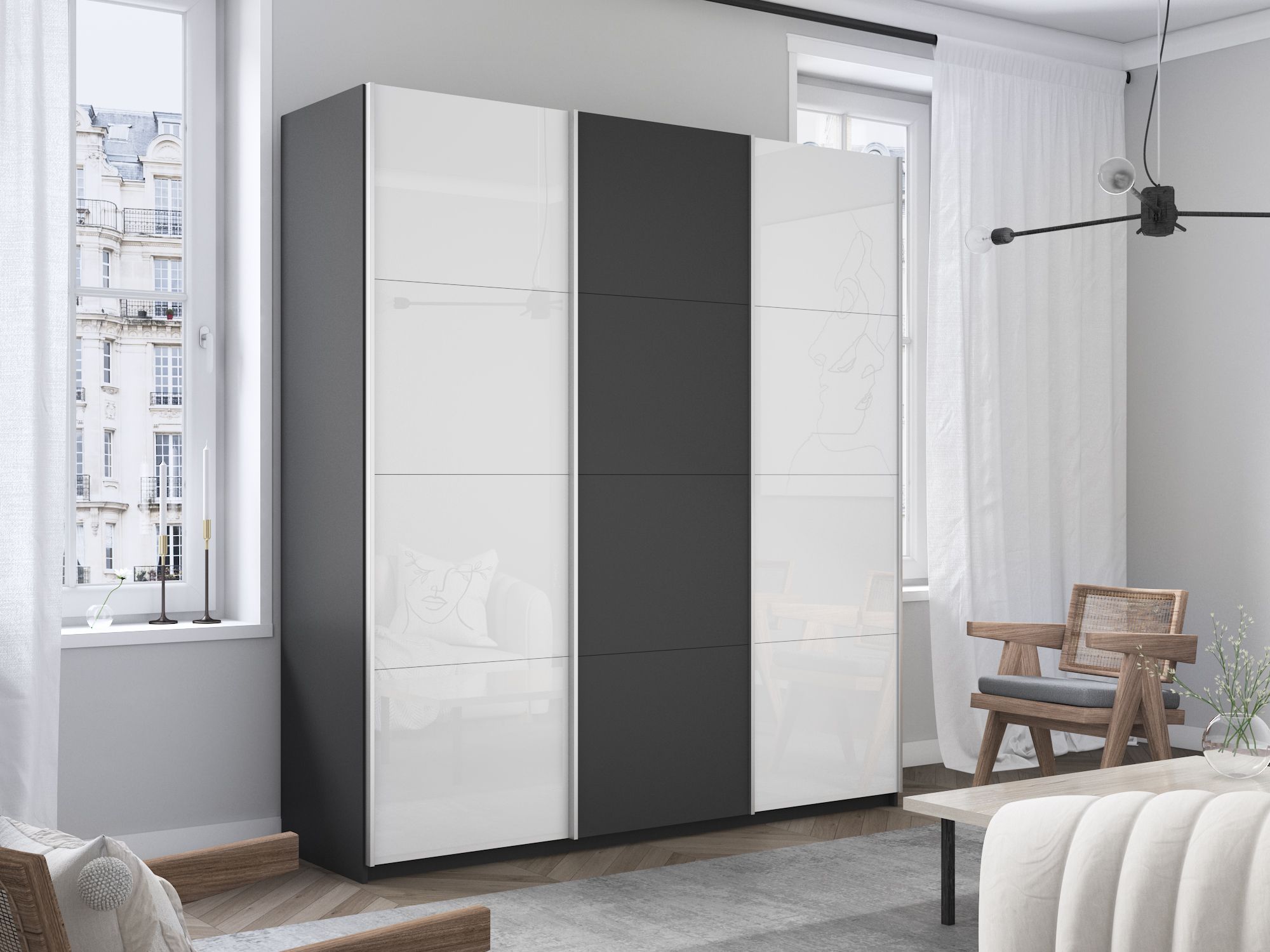 Шкаф-купе Прайм 3-х дверный Стекла белые/ДСП/Доводчики 210х57х230 (Серый диамант)