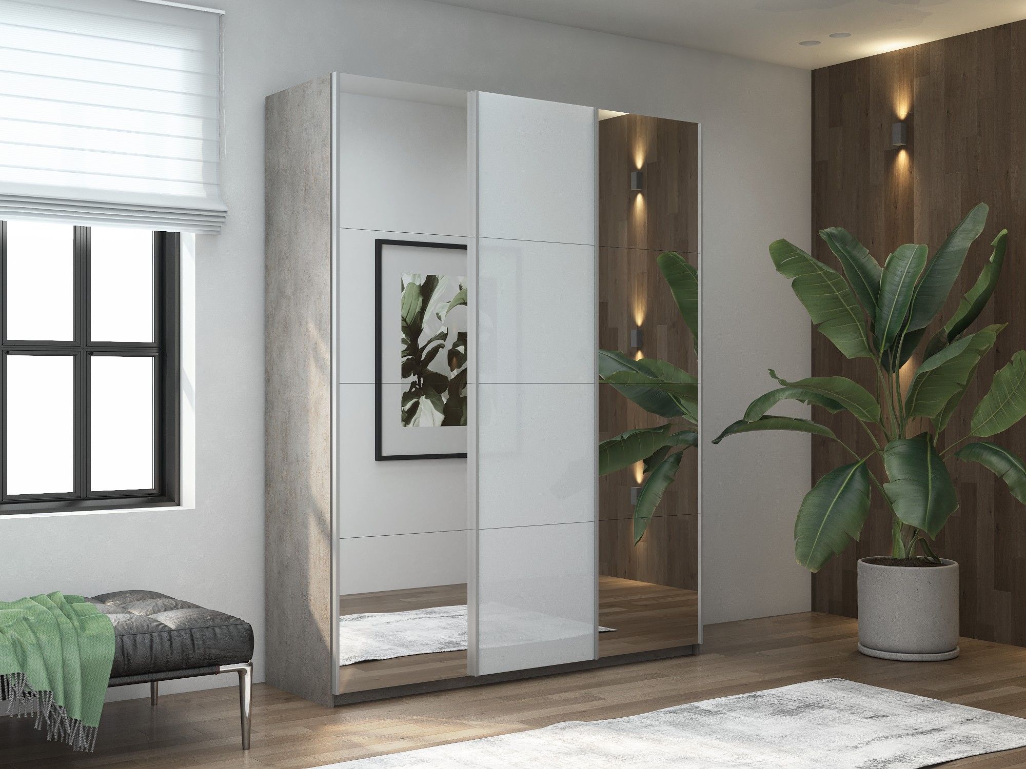 Отзывы о Столплит Шкаф-купе Прайм 3-х дверный Зеркала/Стекло белое/Доводчики 210х57х230 бетон