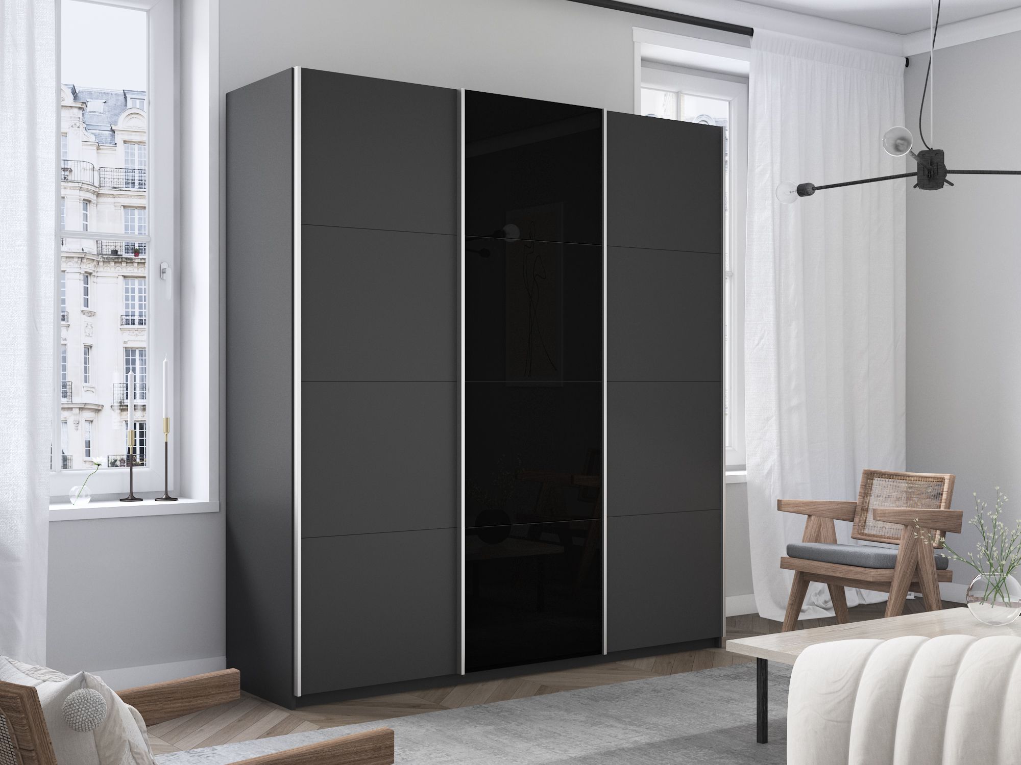Шкаф-купе Прайм 3-х дверный ДСП/Стекло черное/Доводчики 180х57х230 (Серый диамант)