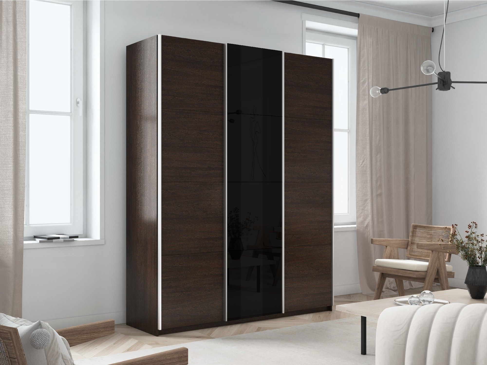 Шкаф-купе Прайм 3-х дверный ДСП/Стекло черное/Доводчики 180х57х230 (Венге)