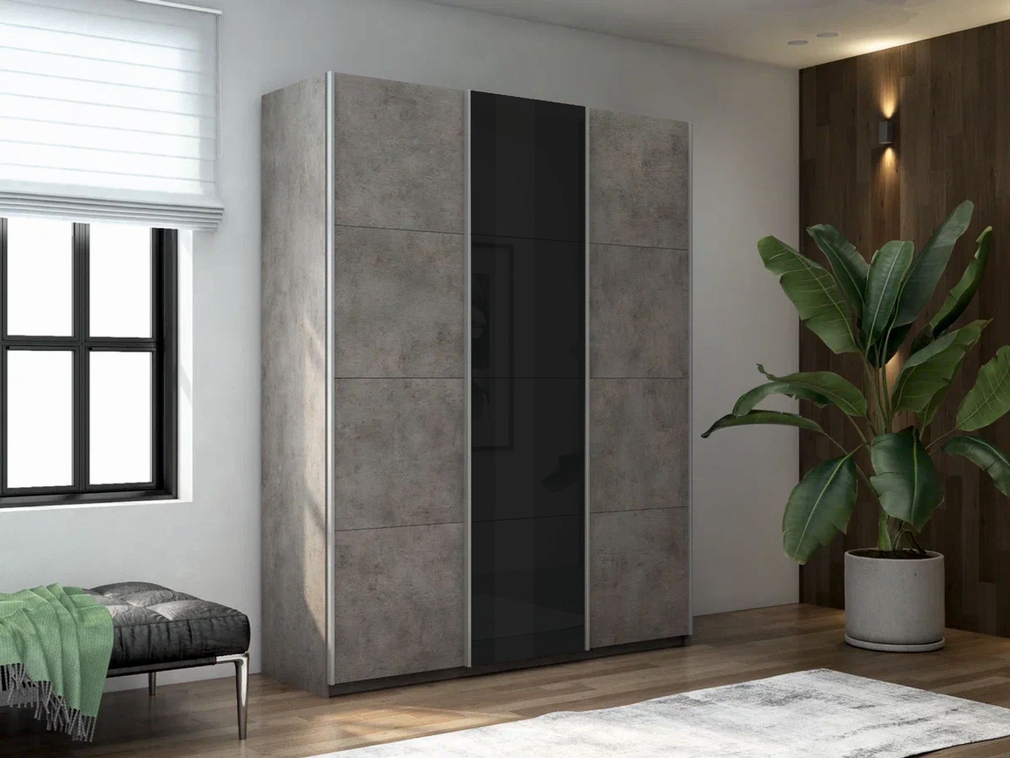 Шкаф-купе Прайм 3-х дверный ДСП/Стекло черное/Доводчики 210х57х230 (бетон) Код I0000427399