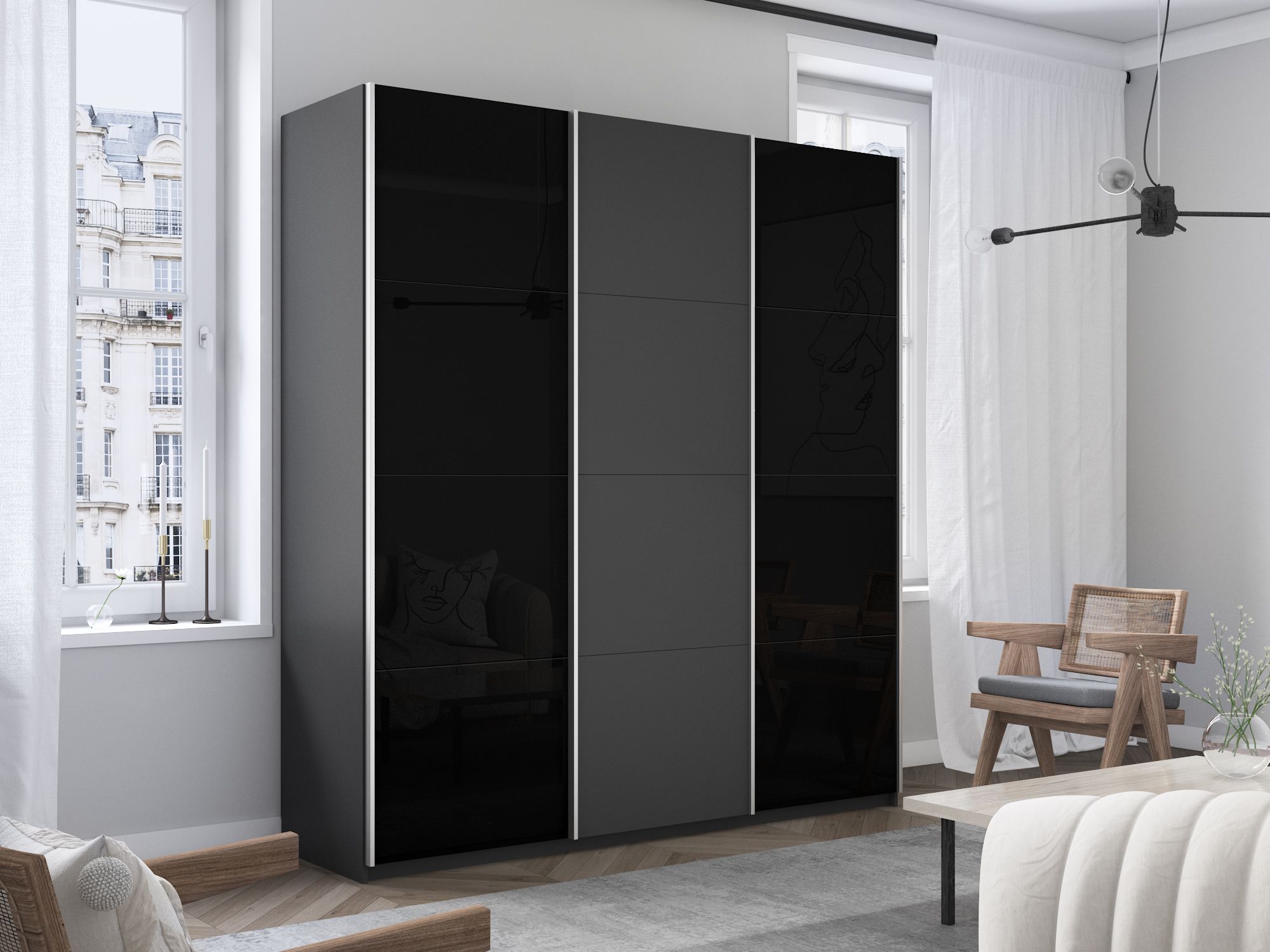 Отзывы о Столплит Шкаф-купе Прайм 3-х дверный Стекла черные/ДСП/Доводчики 210х57х230 Серый диамант