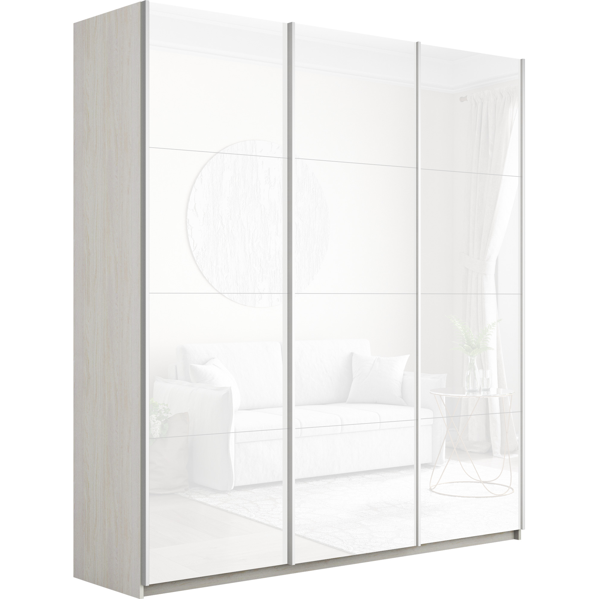 Шкаф-купе Прайм 3-х дверный Стекла белые/Доводчики 180х57х230 (Ясень Анкор светлый) Код I0000427455
