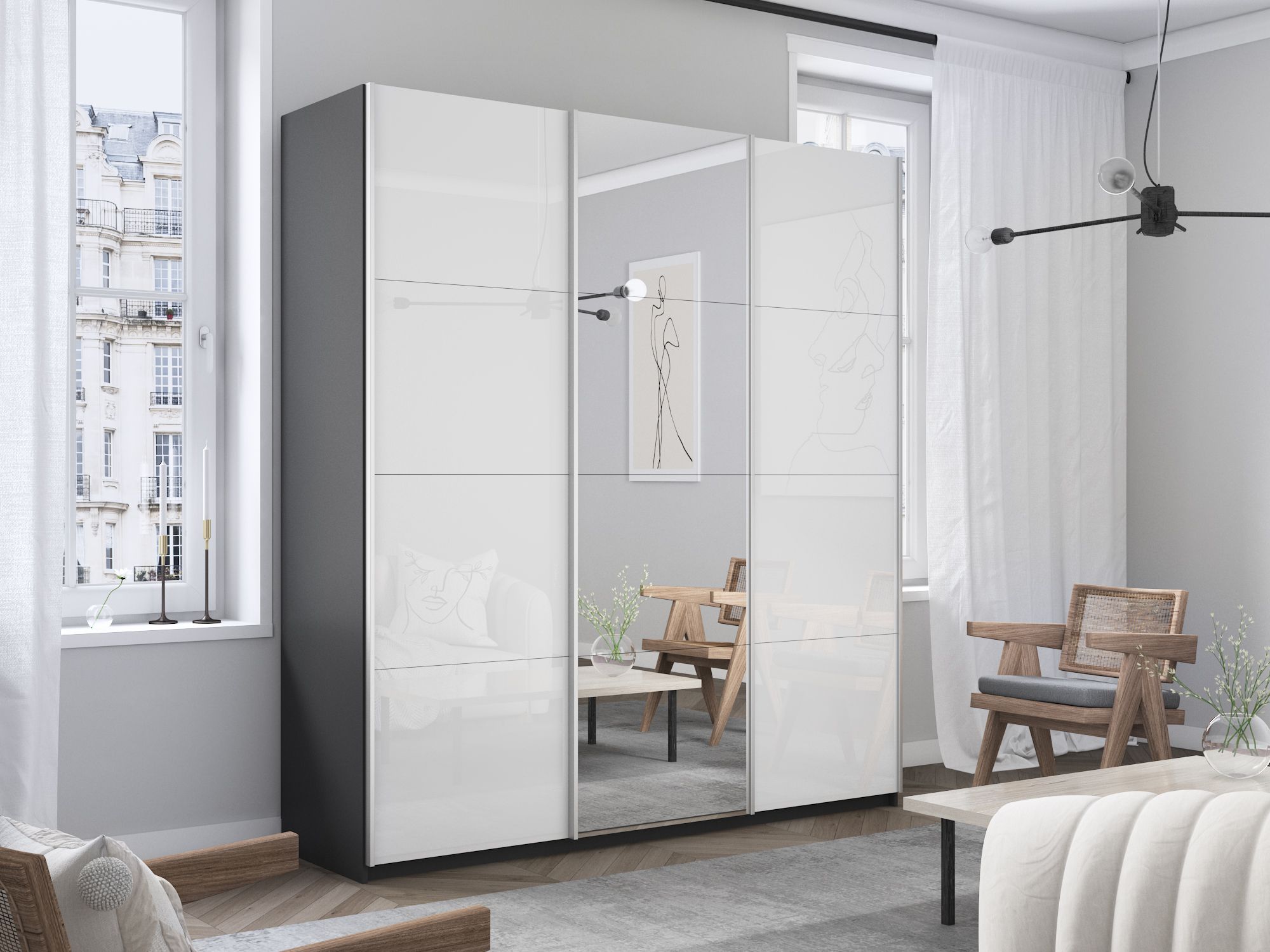 Отзывы о Столплит Шкаф-купе Прайм 3-х дверный Стекла белые/Зеркало/Доводчики 210х57х230 Серый диамант