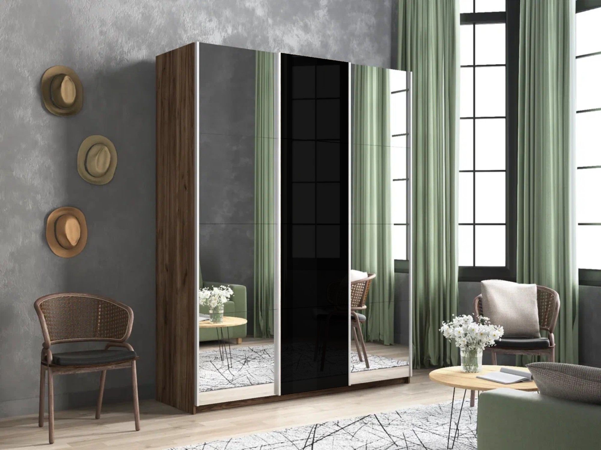 Отзывы о Столплит Шкаф-купе Прайм 3-х дверный Зеркала/Стекло черное/Доводчики 180х57х230 Дуб/крафт/табак