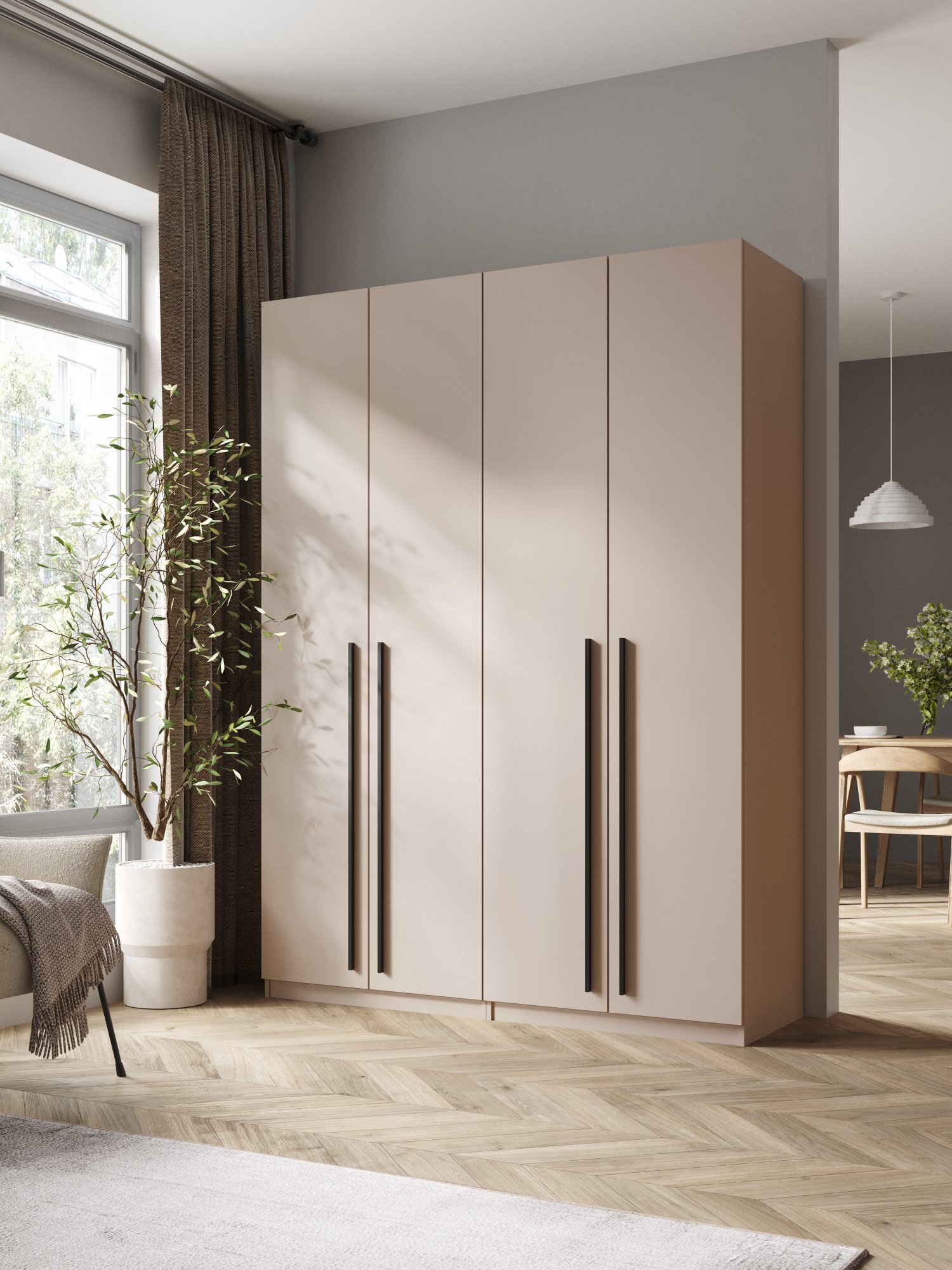 Полки и штанга позволяют разместить одежду компактно и аккуратно. Кроме того, стильные металлические ручки добавляют шкафу изысканности и элегантности.