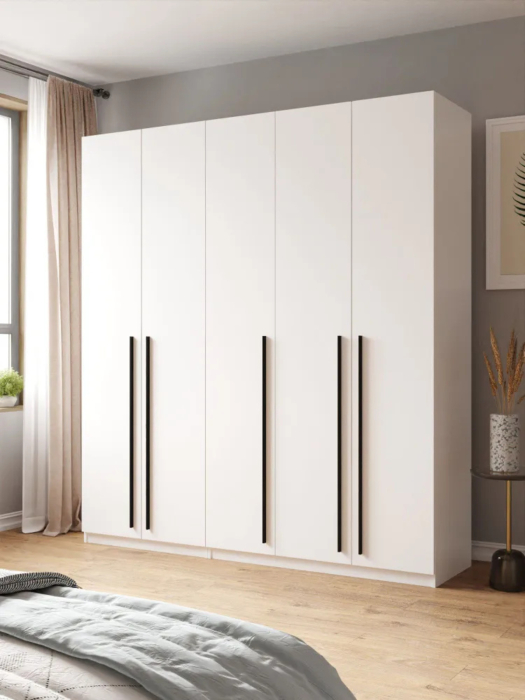 Шкаф для одежды распашной с ящиками 5-ти дверный, Принцесса Мелания, Белый, 2200х2000х520 мм - это элегантное и функциональное решение для хранения вашей одежды. Этот шкаф отлично впишется в интерьер гостиной, прихожей, спальни или гардеробной комнаты.