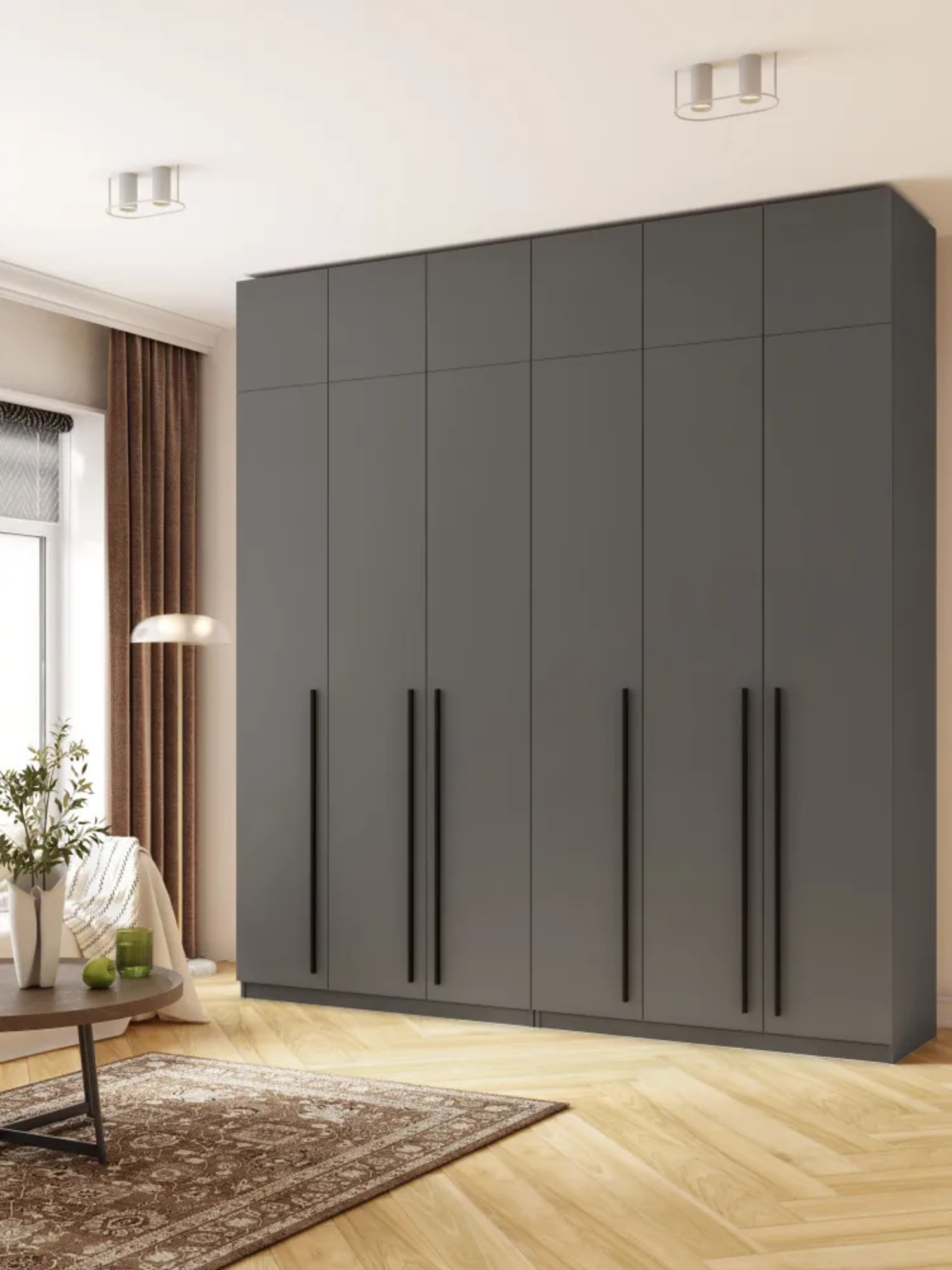 Шкаф распашной 6-ти дверный с антресолью София 2600х2400х520 мм (Графит) Код I0000428352