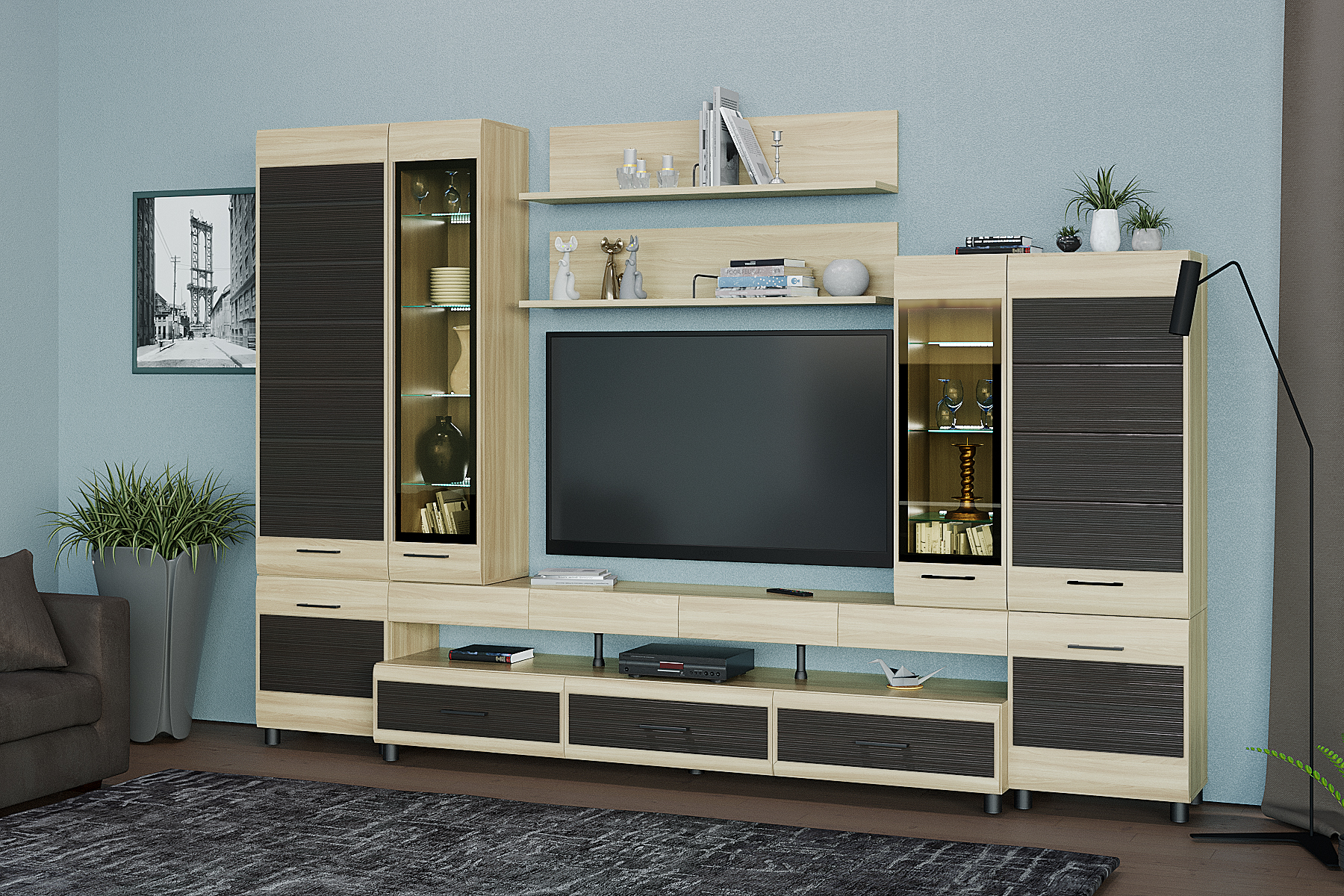 Отзывы о Столплит Модульная гостиная Камелия композиция 3 Ясень Асахи/Темно-коричневый