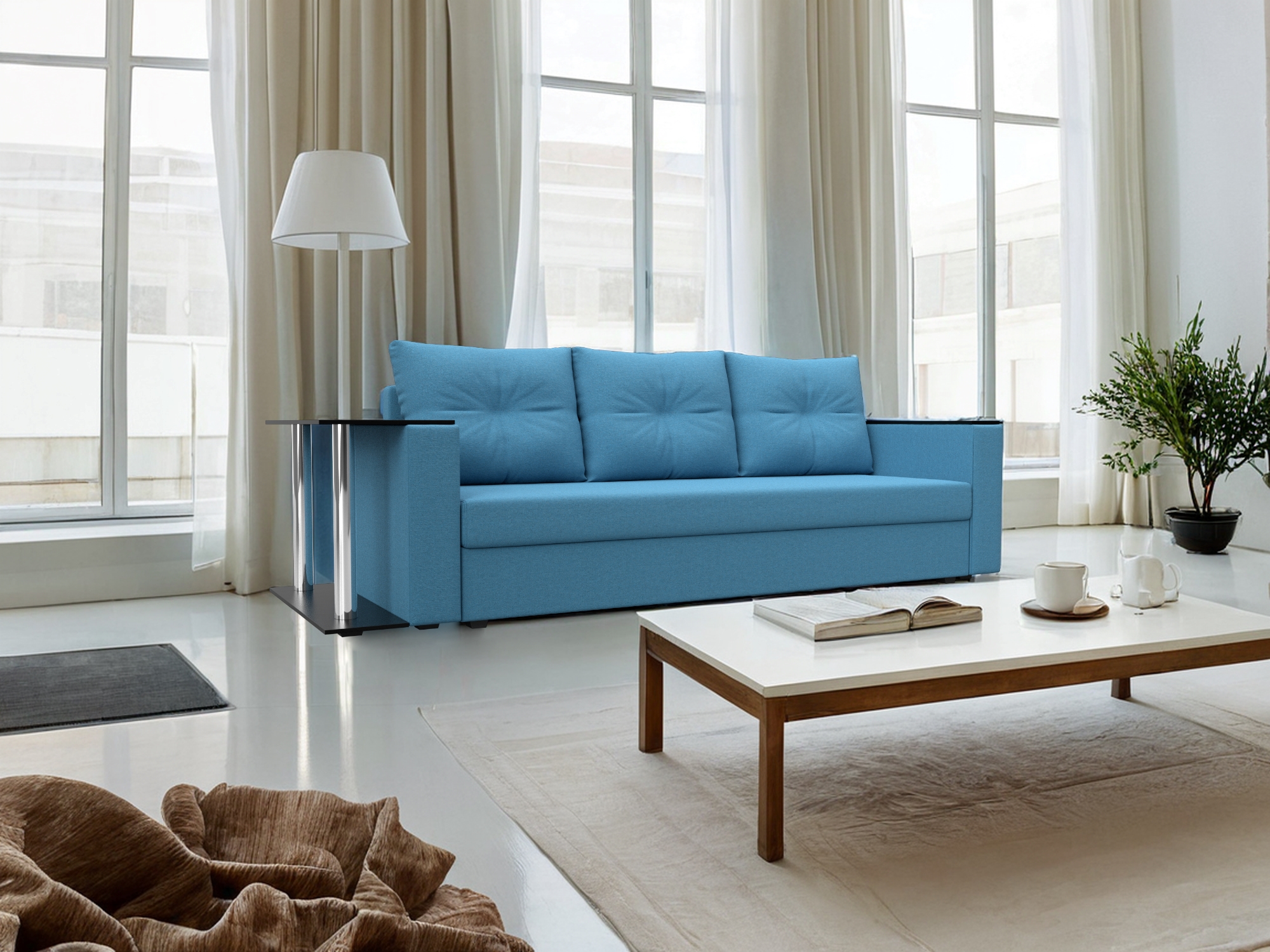 Отзывы о Столплит Диван прямой Атланта со столом слева, рогожка Амур Голубой